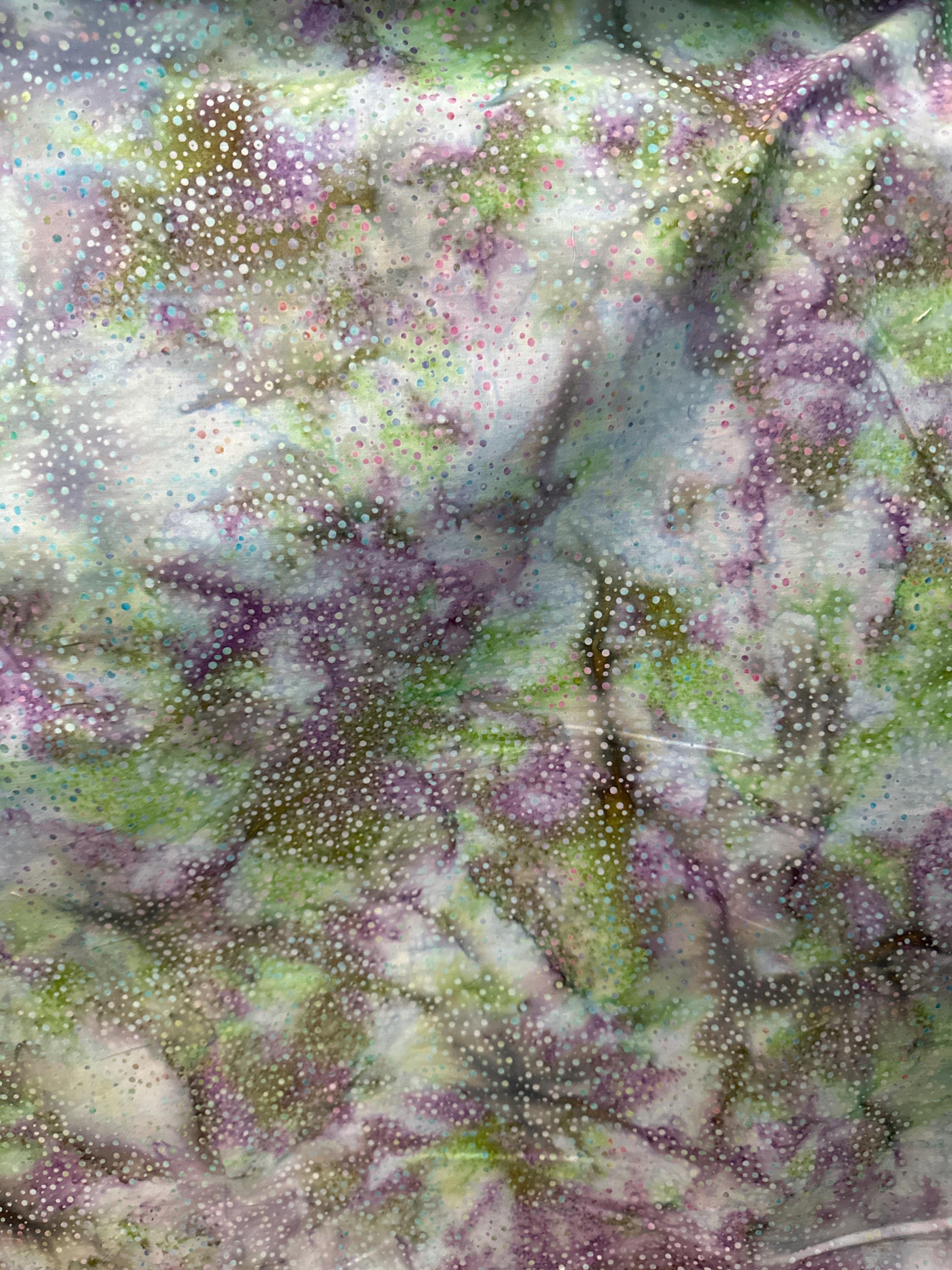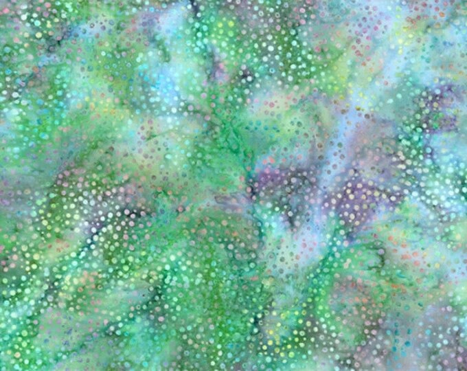 Bali Chops Opal, Hoffman Batik Fabrics, Garden Gathering Line, Color Light Green, Purple, Turquoise, Dot Batiks 1 Yard Cotton