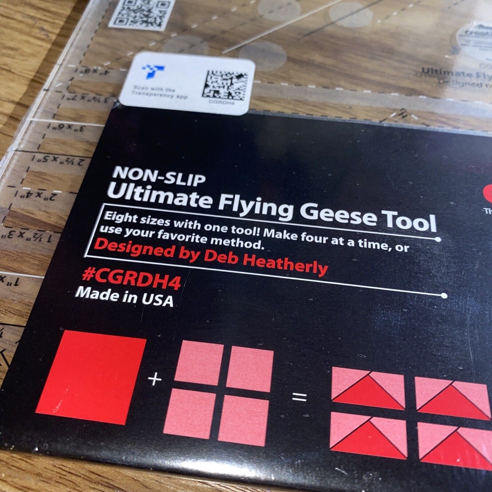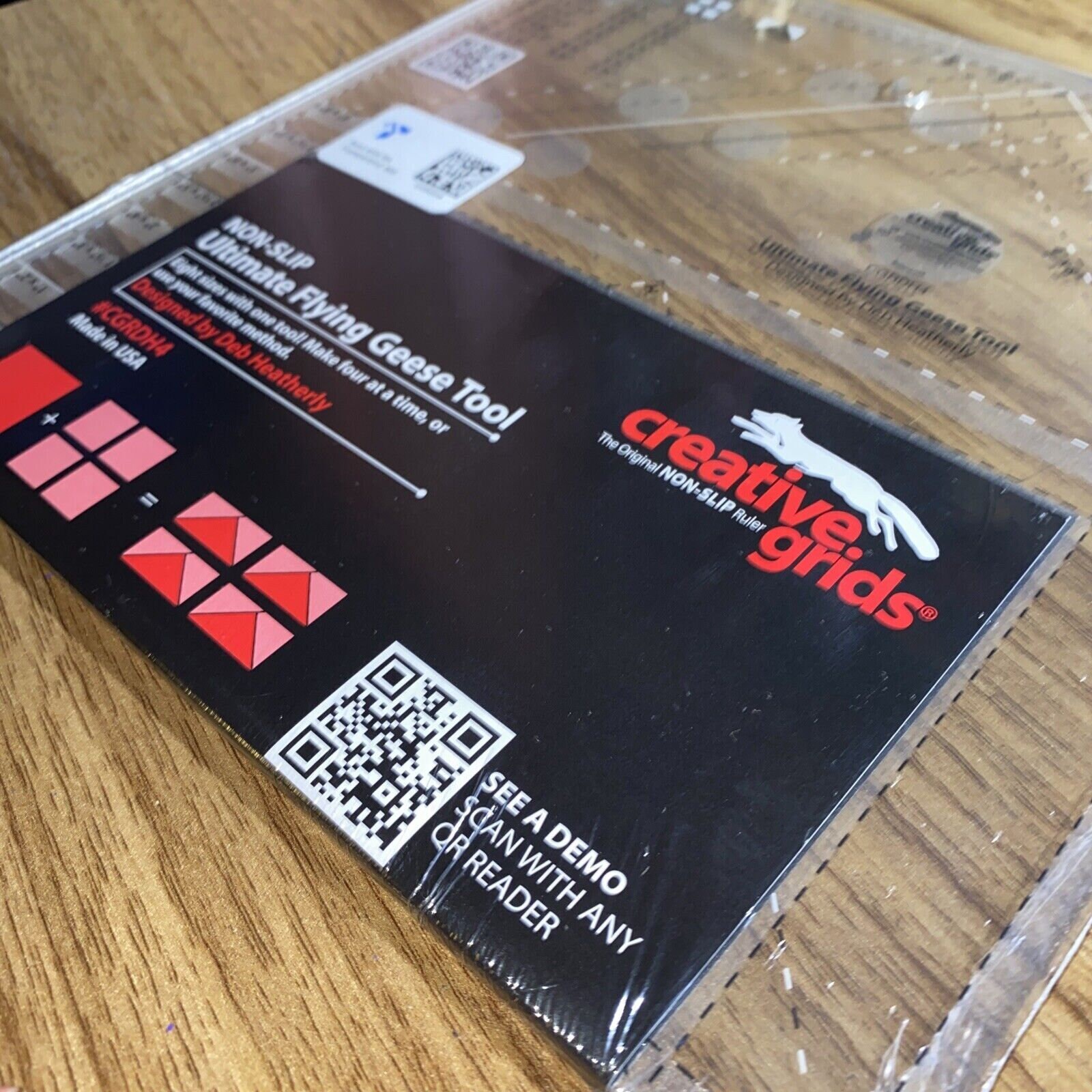 Very fast, easy and accurate! Make four Flying Geese units at one time - the printed cutting chart on the ruler works for TWO different methods! Or, oversize your favorite method for making Flying Geese, then use the Ultimate Flying Geese Tool to trim to perfection. Create eight different finished sizes from 1 x 2 to 4 x 8 inches - the cutting requirements for each size is printed right on the tool! Or, use your favorite method to create over-sized units... then trim them down to perfection.