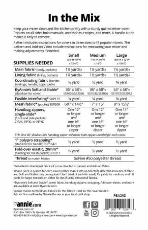 The pattern includes complete instructions for covers in three sizes to fit popular mixers. The pattern and Add-on Video include instructions for measuring your mixer and making adjustments if needed.