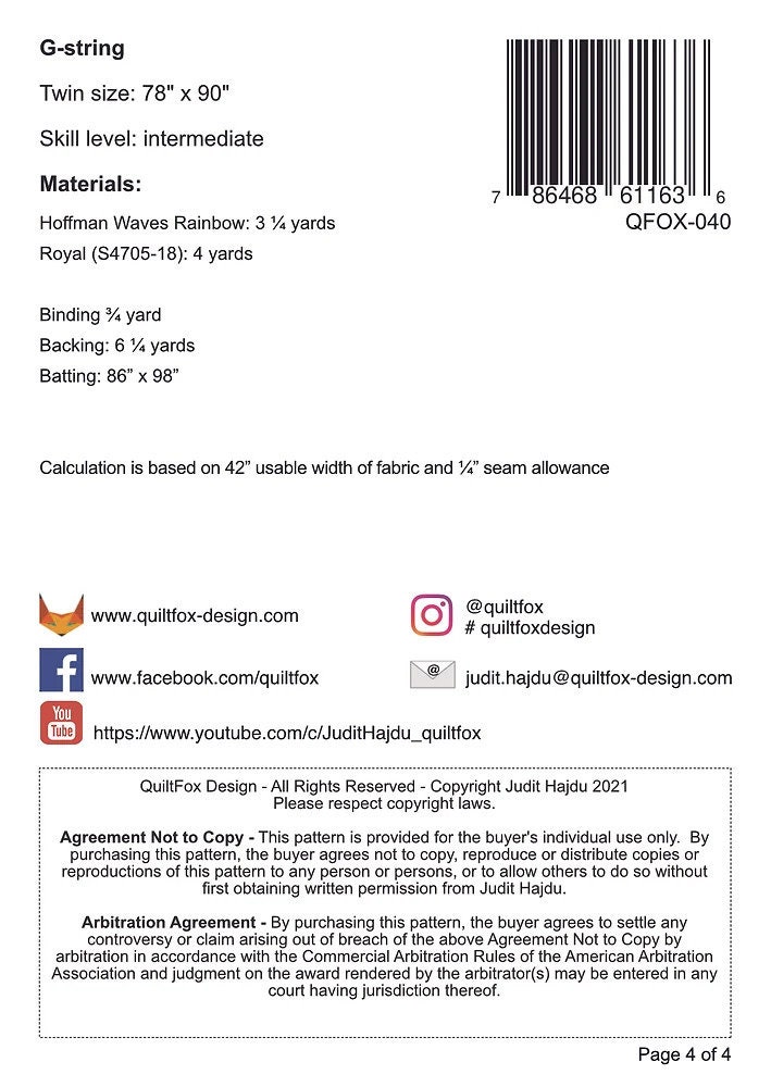 G-String, Size Quilt Pattern By Quilt Fox Designs