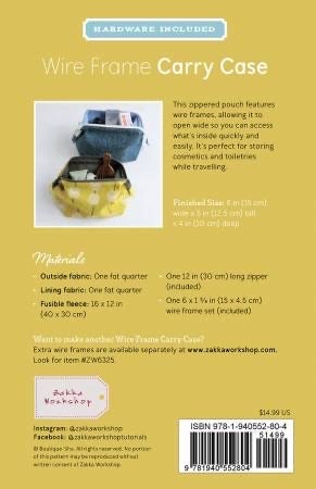 Kit includes pattern, 6" (15 cm) wire frame set, and one 12" (30 cm) zipper