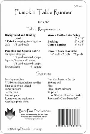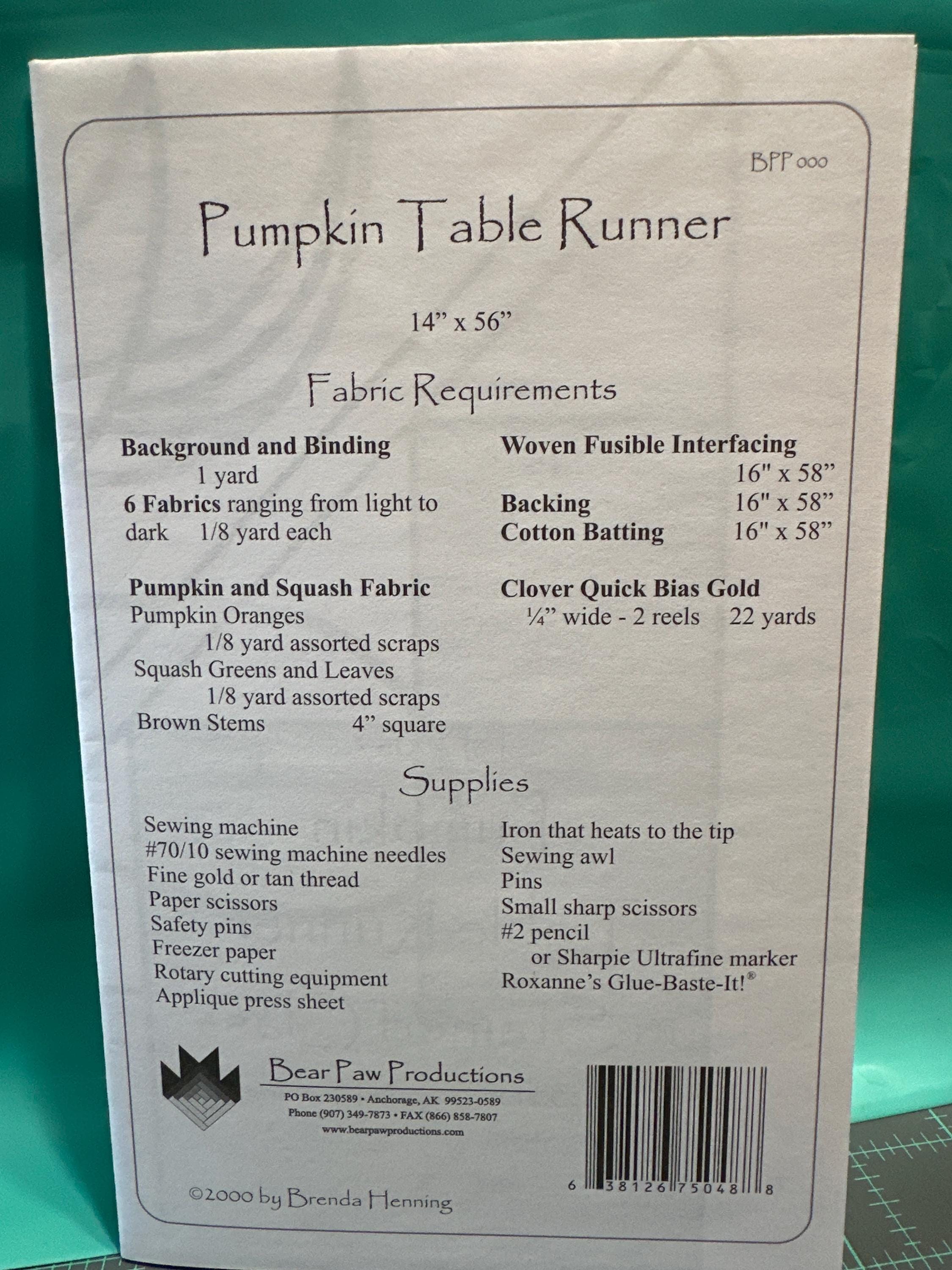 Pumpkin Table Runner in Stained Glass Sewing/Quilt Pattern