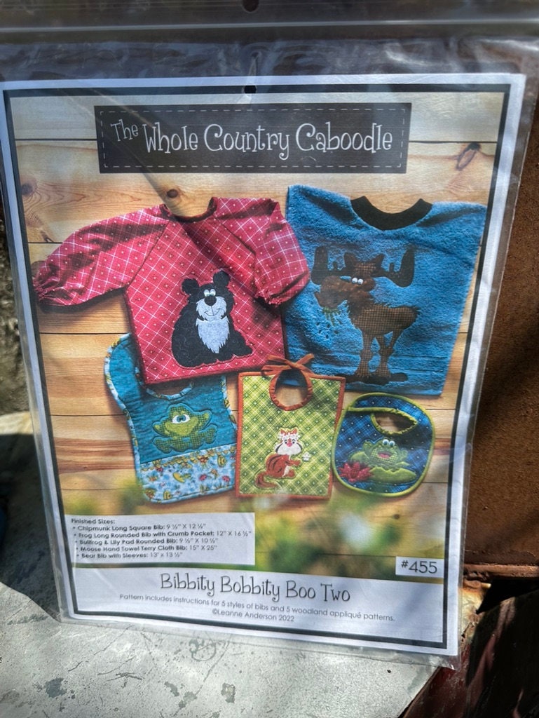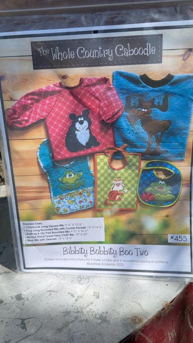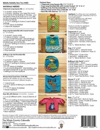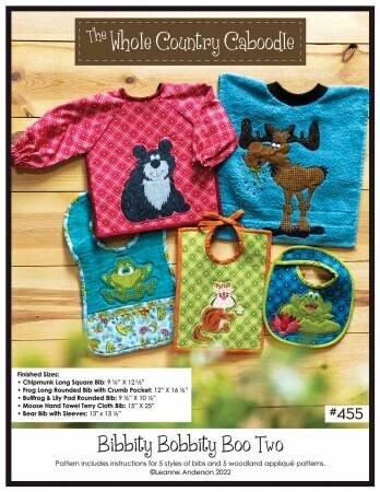 Pattern includes instructions for 5 styles of bibs and 5 woodland appliqué patterns. Fabrics used are from Starry Basics, Bias Plaid Basics, Houndstooth Basics, & S'More Fun Outdoors with Henry Glass Fabrics.