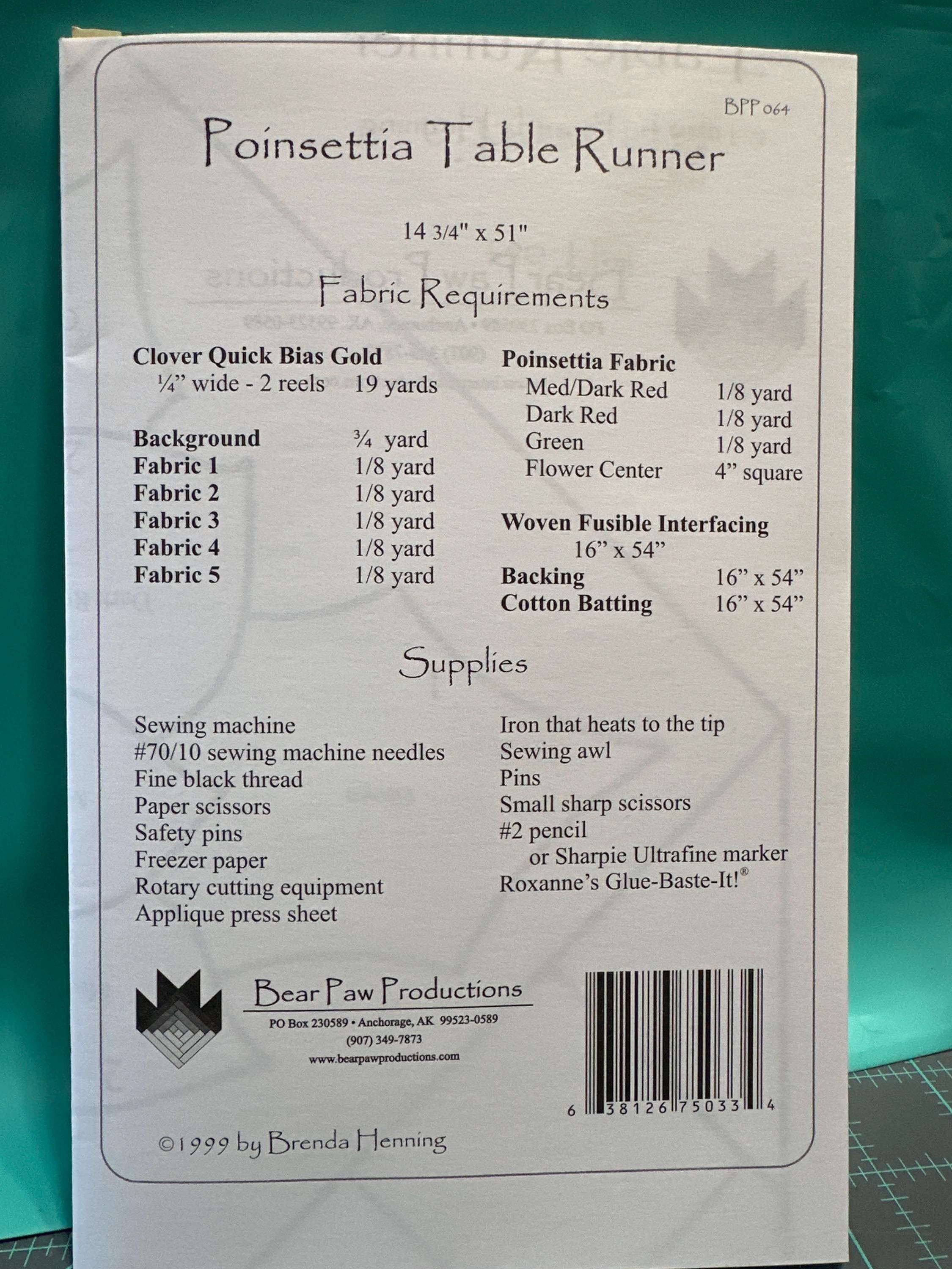 Poinsettia Table Runner Quilt as you go - by Brenda Henning # BPP064