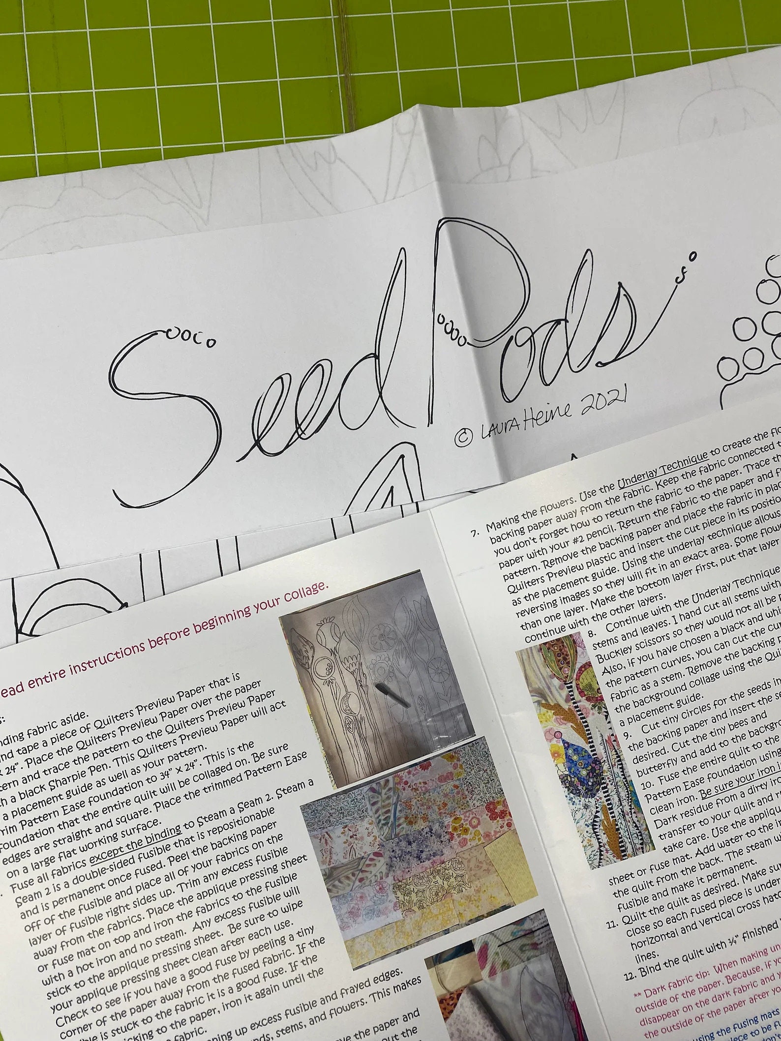 Seed Pods Collage Pattern by Laura Heine Outdoor Themed Floral Collage Quilters Pattern, Fiberworks Collage Patterns