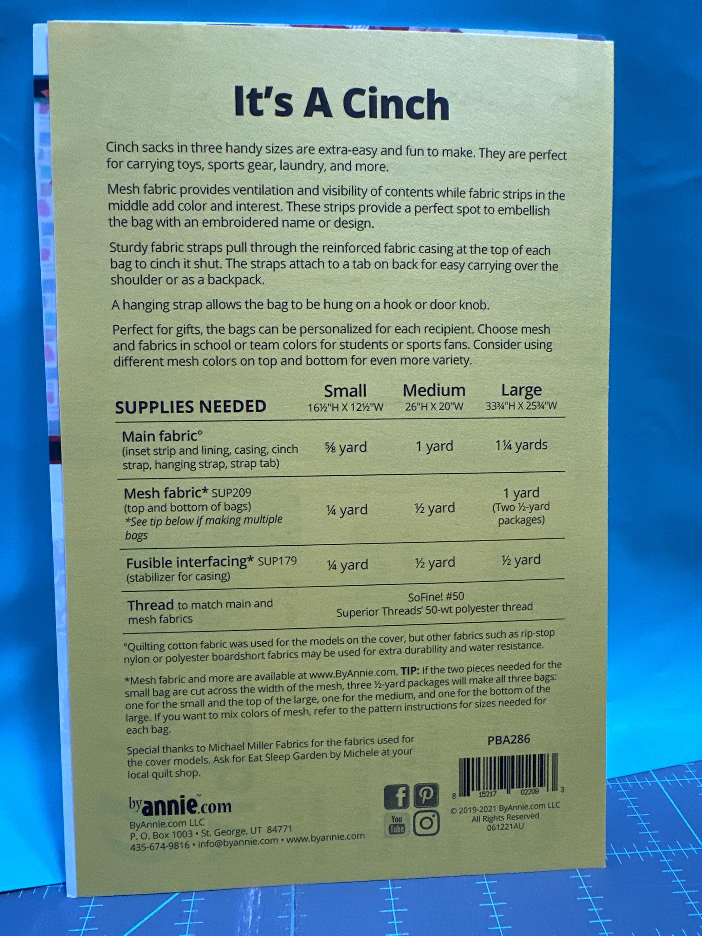 t's A Chinch **Sack in three handy sizes**Sewing Pattern By Annie