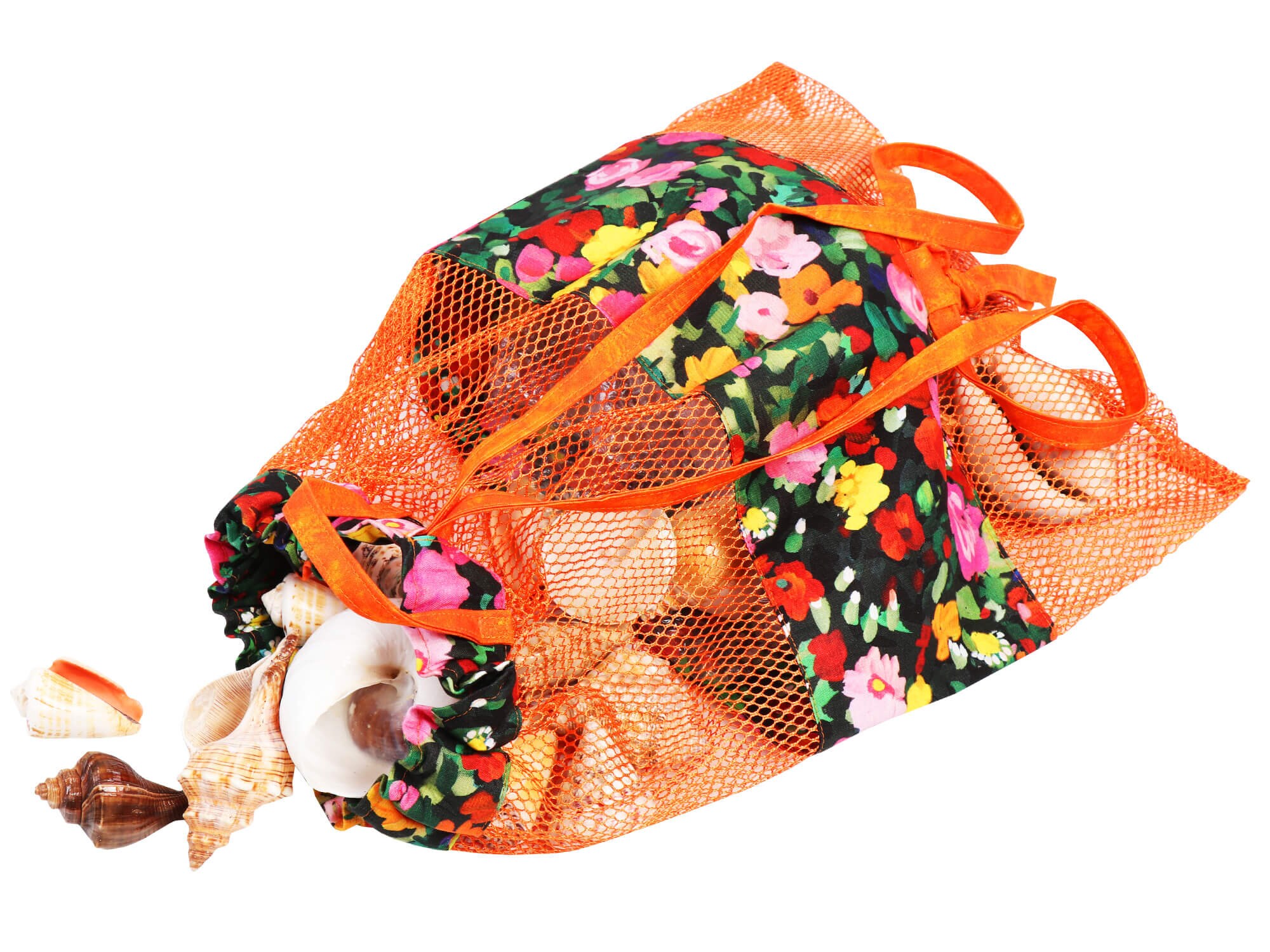 Mesh fabric provides ventilation and visibility of contents while fabric strips in the middle add color and interest. These strips provide a perfect spot to embellish the bag with an embroidered name or design.