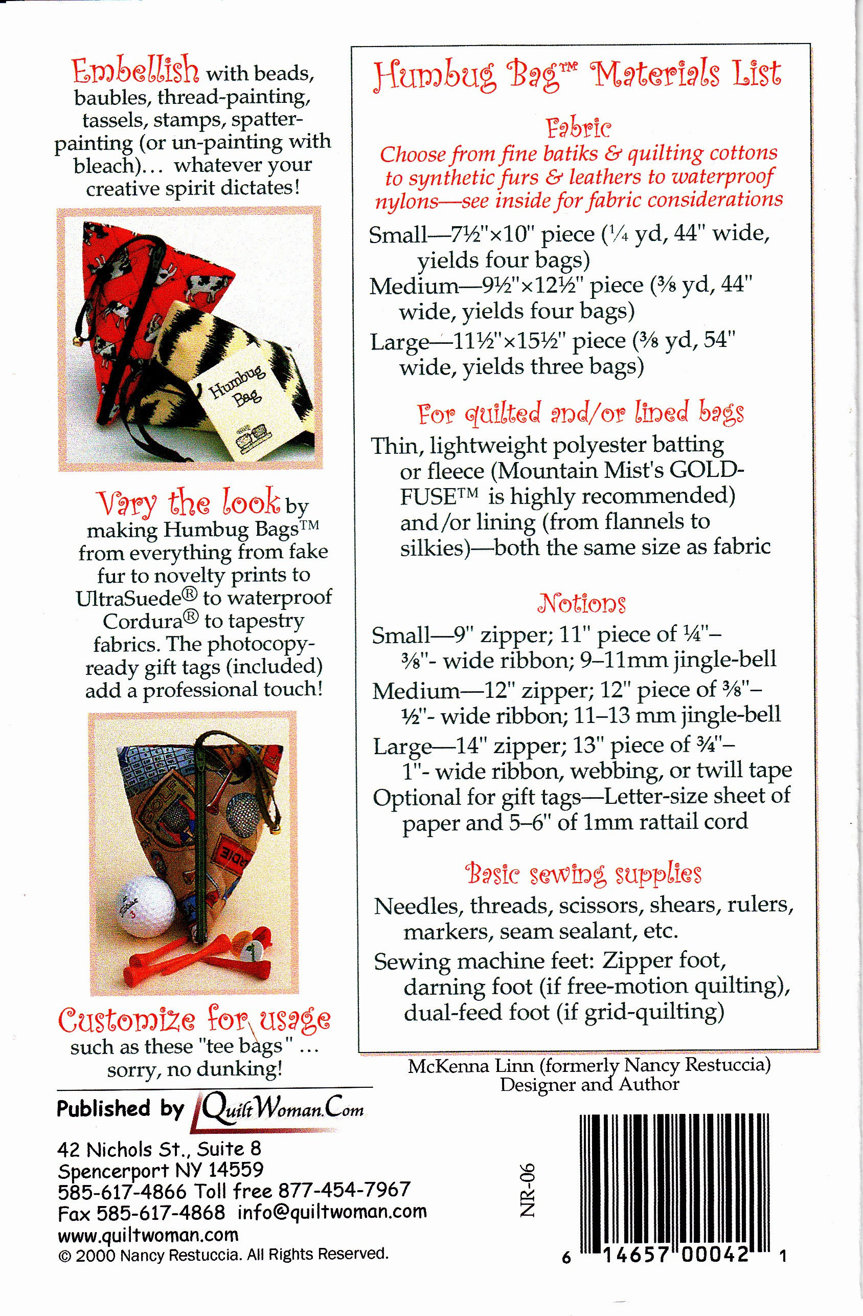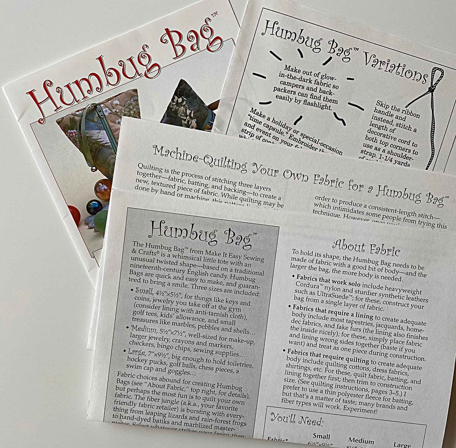 Humbug Bag Pattern all 3 sizes included. QuiltWoman.com