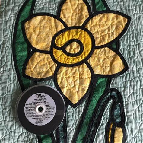 Pre-folded iron-on bias tape. Eliminates making bias & pinning into place. Use for stain glass applique and pinweaving, etc.