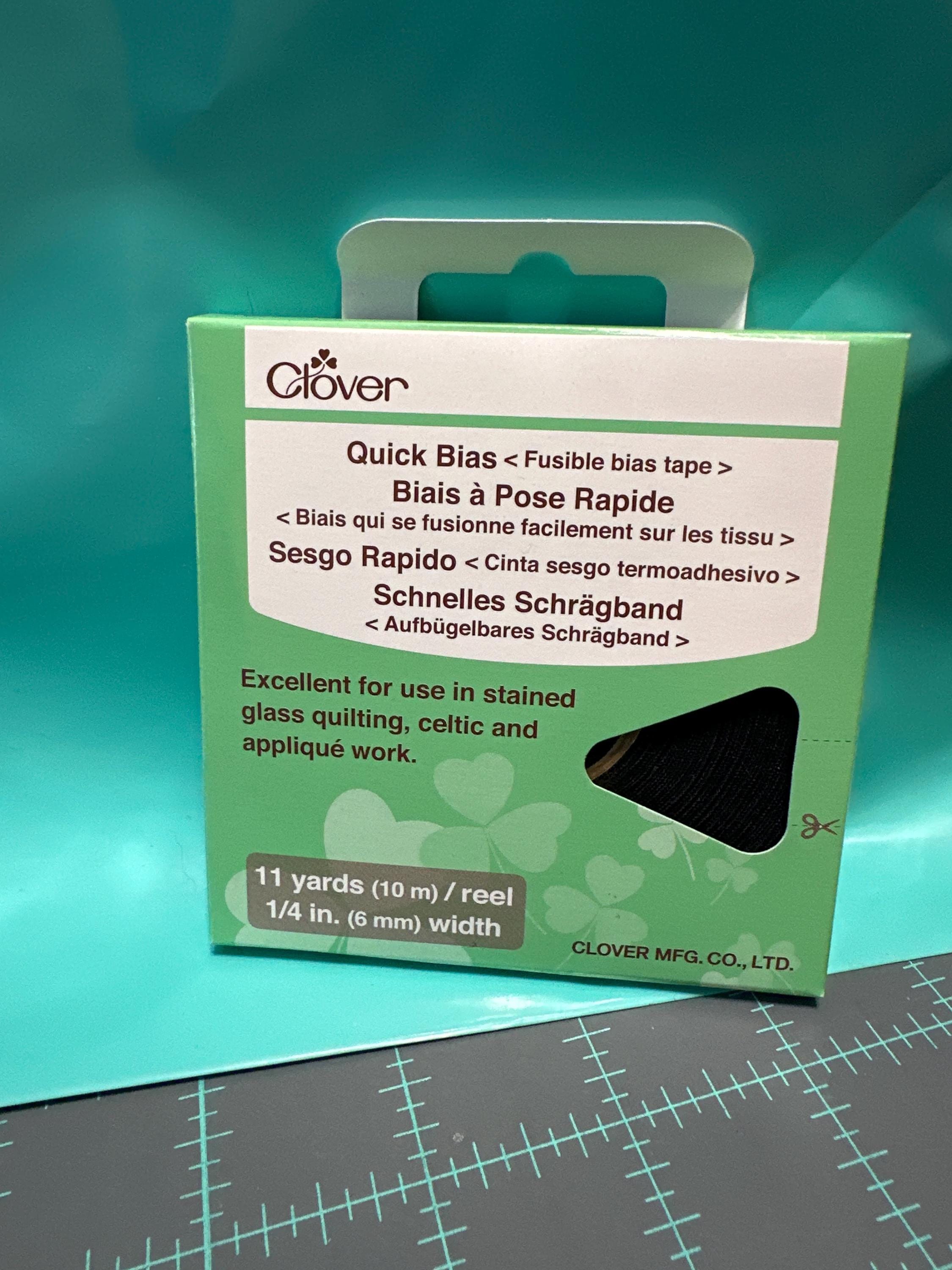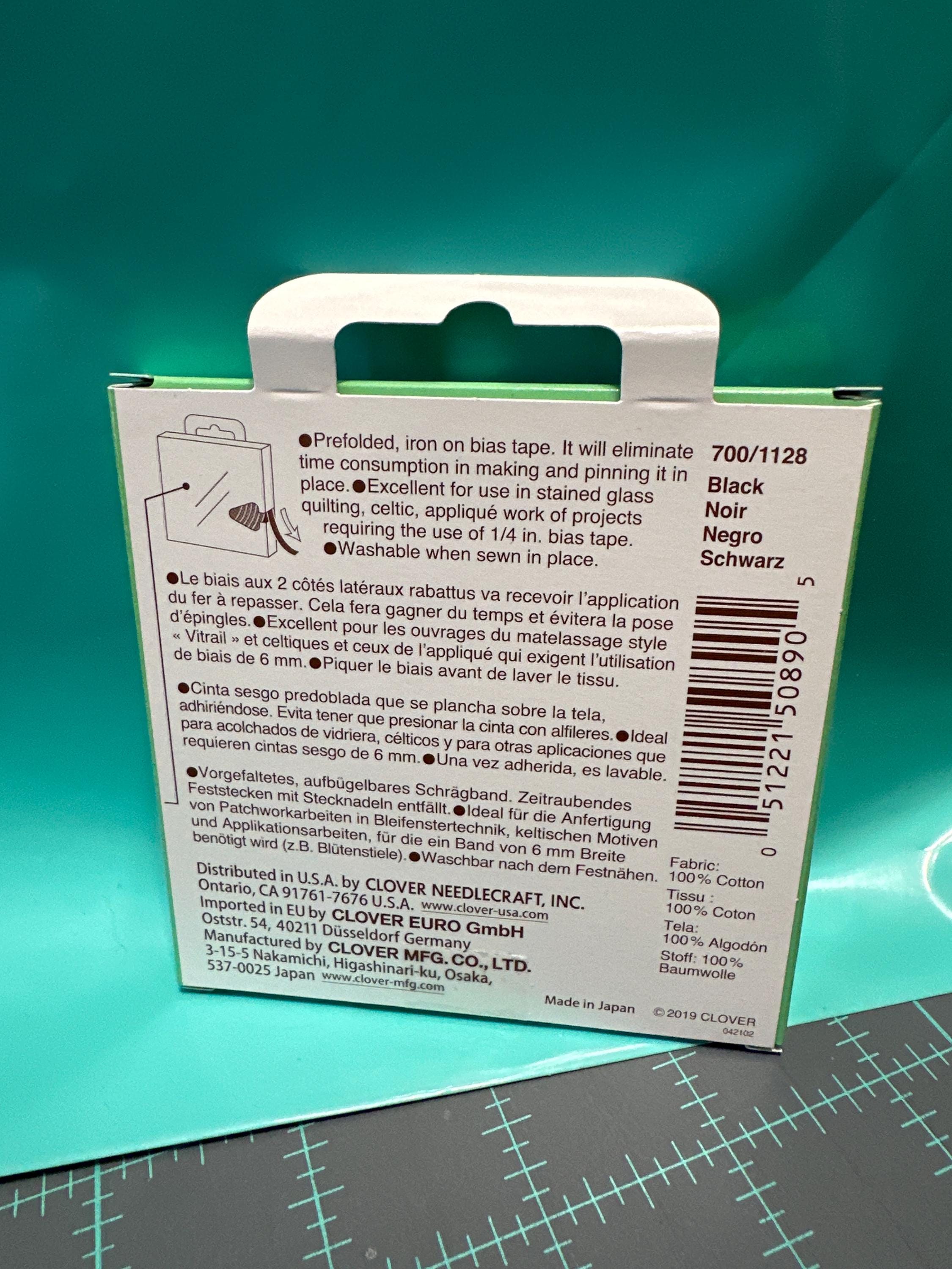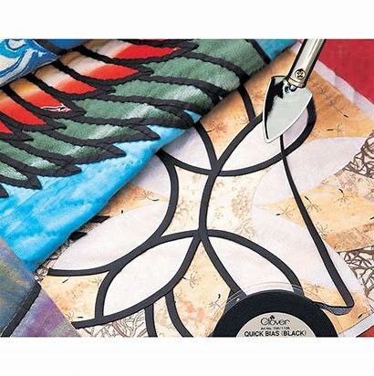 Easily ironed on to straight or curved fabric designs. It will eliminate time consumed in making and pinning it in place. Excellent for use in stained glass quilting, celtic, applique work or projects requiring the use of (1/4") bias tape. Quick Bias Tape Black available in 11 yards (10 meters) / reel