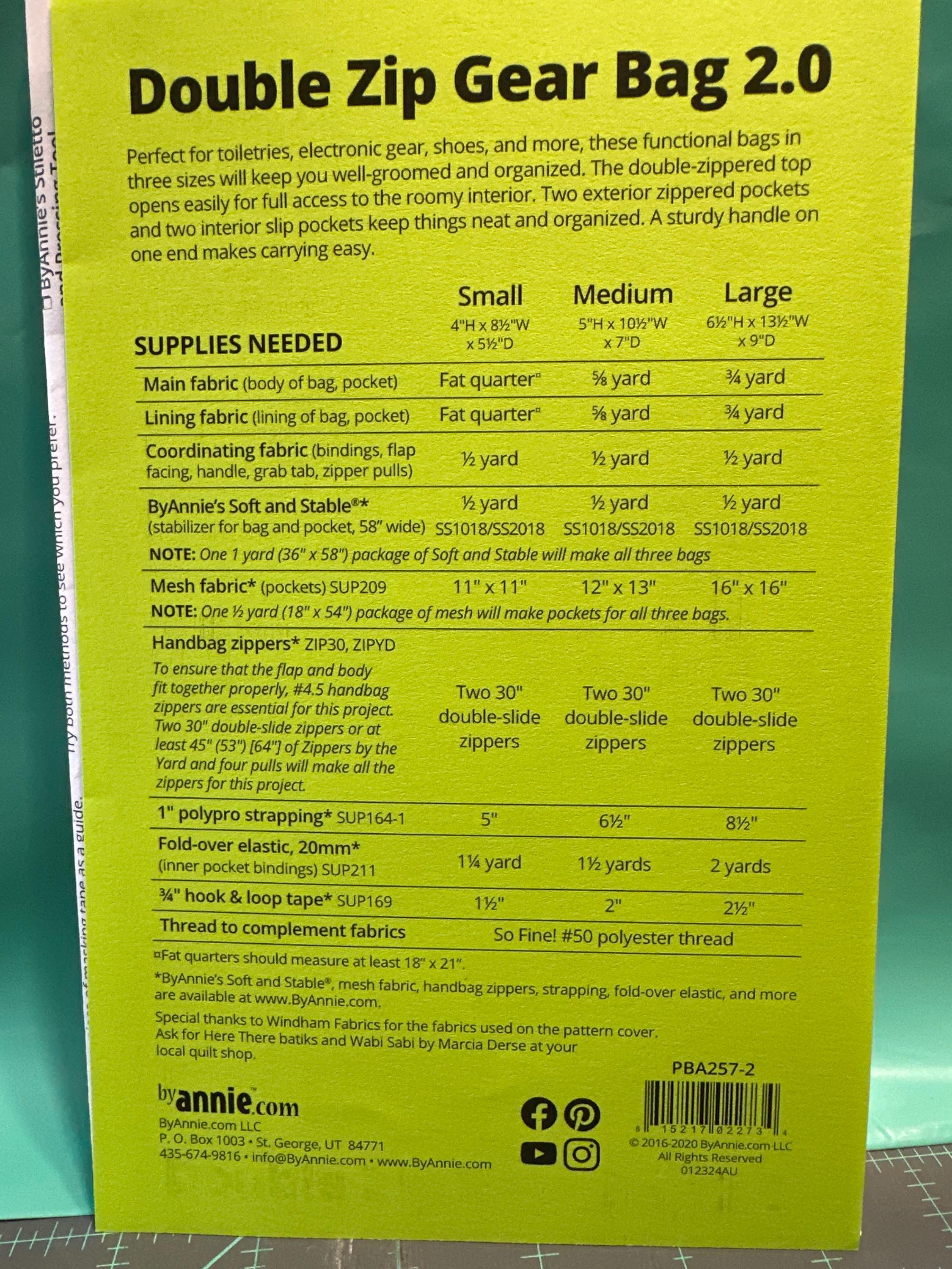 NOTE TO CUSTOMERS: Double Zip Gear Bag 2.0 is an update of our popular Double Zip Gear Bag pattern which was released in 2016. Just like a new edition of a textbook, this new version of the pattern features improved design and layout, easier-to-follow steps and diagrams, and our newest and best techniques.