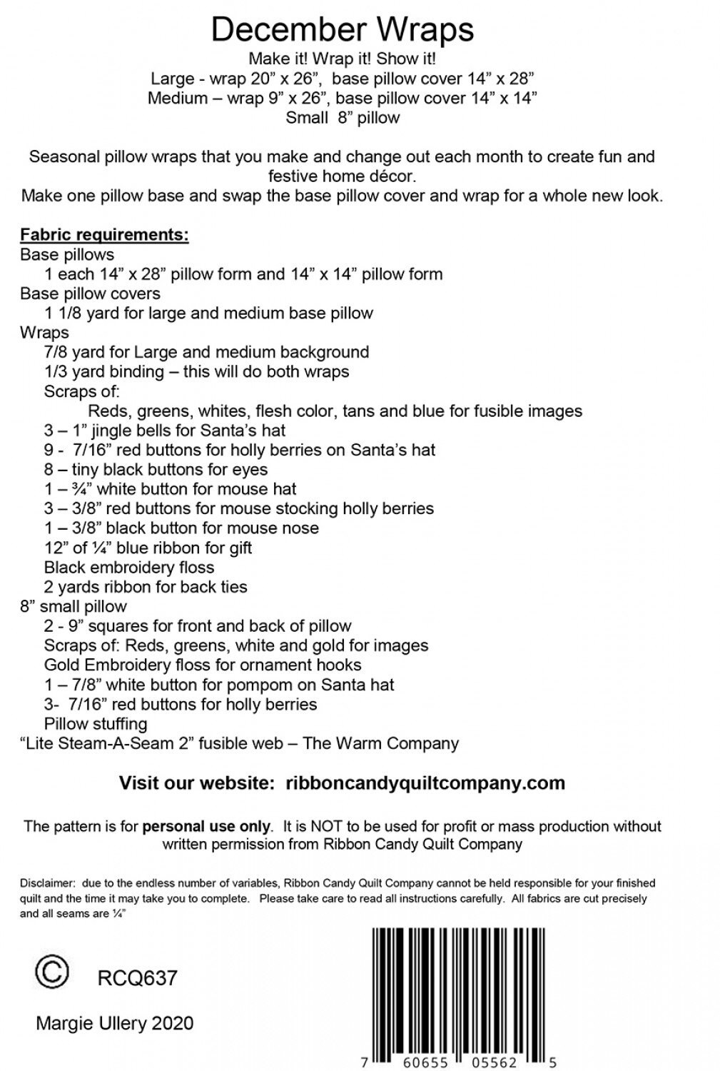 December Wraps-Pillow Wrap Pattern-Ribbon Candy Quilt Company-Christmas Wall Hanging Quilt Pattern