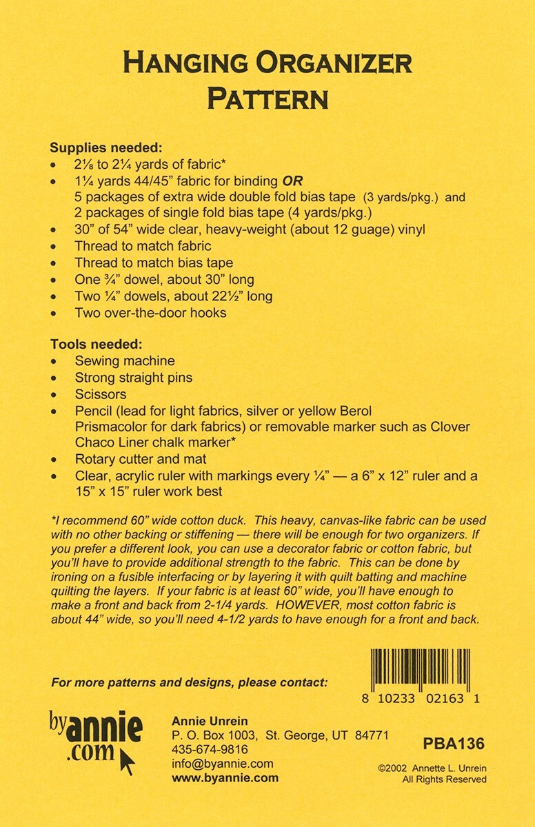 Hanging Organizer Paper Pattern from ByAnnie's Pattern