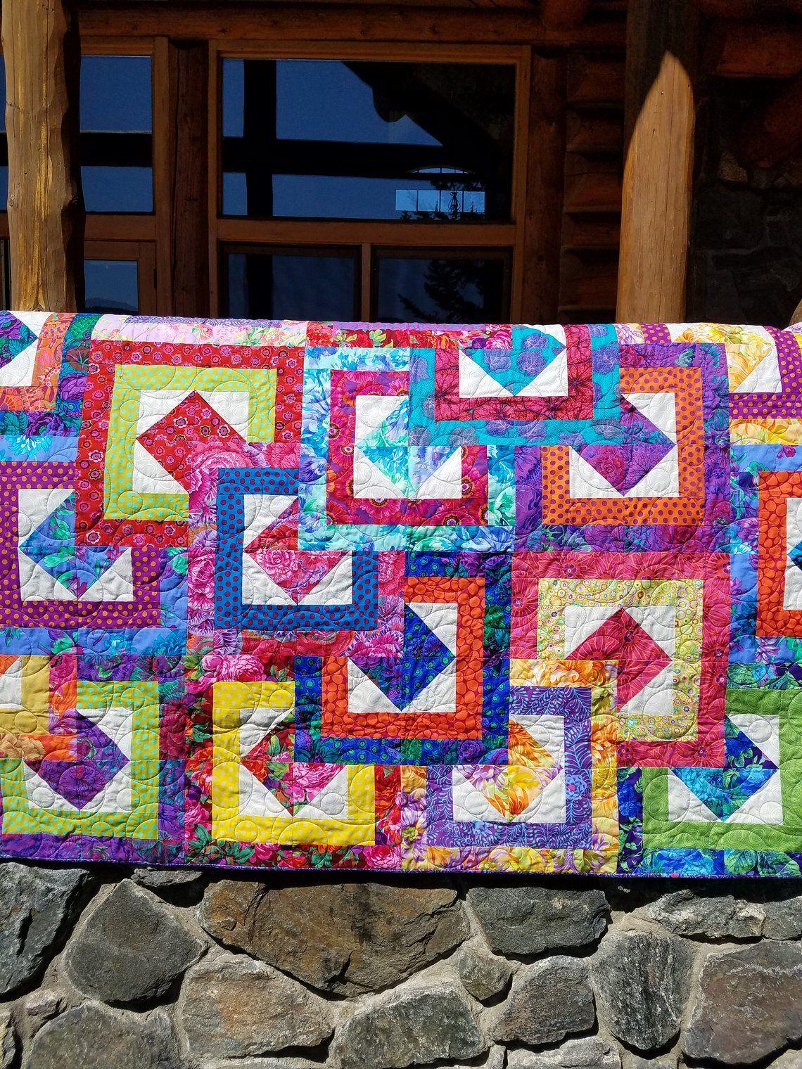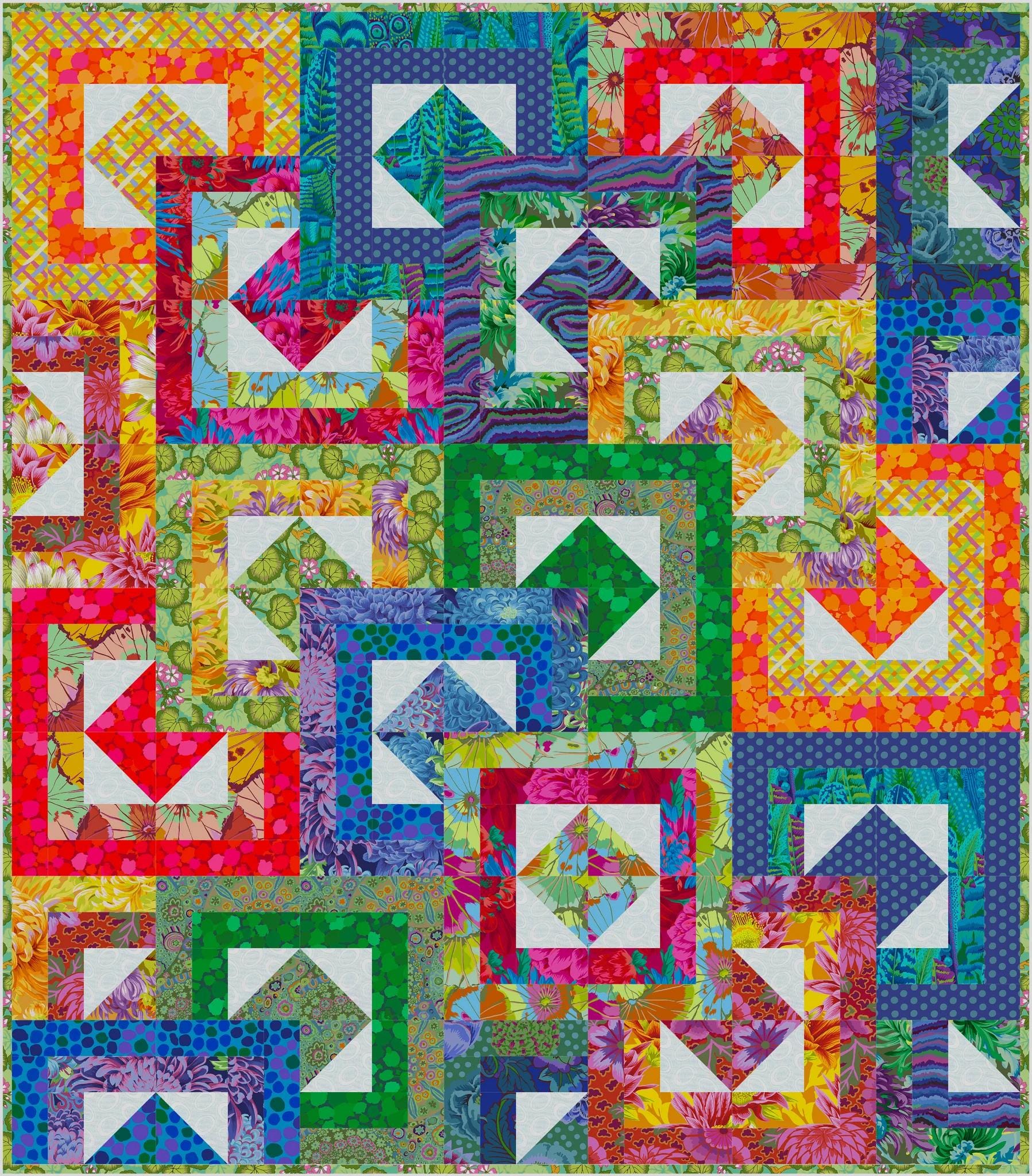 Looks complicated but it's not! Gather a few dozen 1/3 yard cuts and you are ready to go with this fun and easy to piece patchwork quilt! For more a scrappy look, you could choose 1/4 yard and 1/8 cuts!