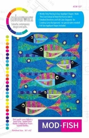 MOD FISH Quilt Pattern - Colourwerx - Colorful Contemporary Modern - Wonky Strip Piecing Easy Appliqué Shapes Fish School.