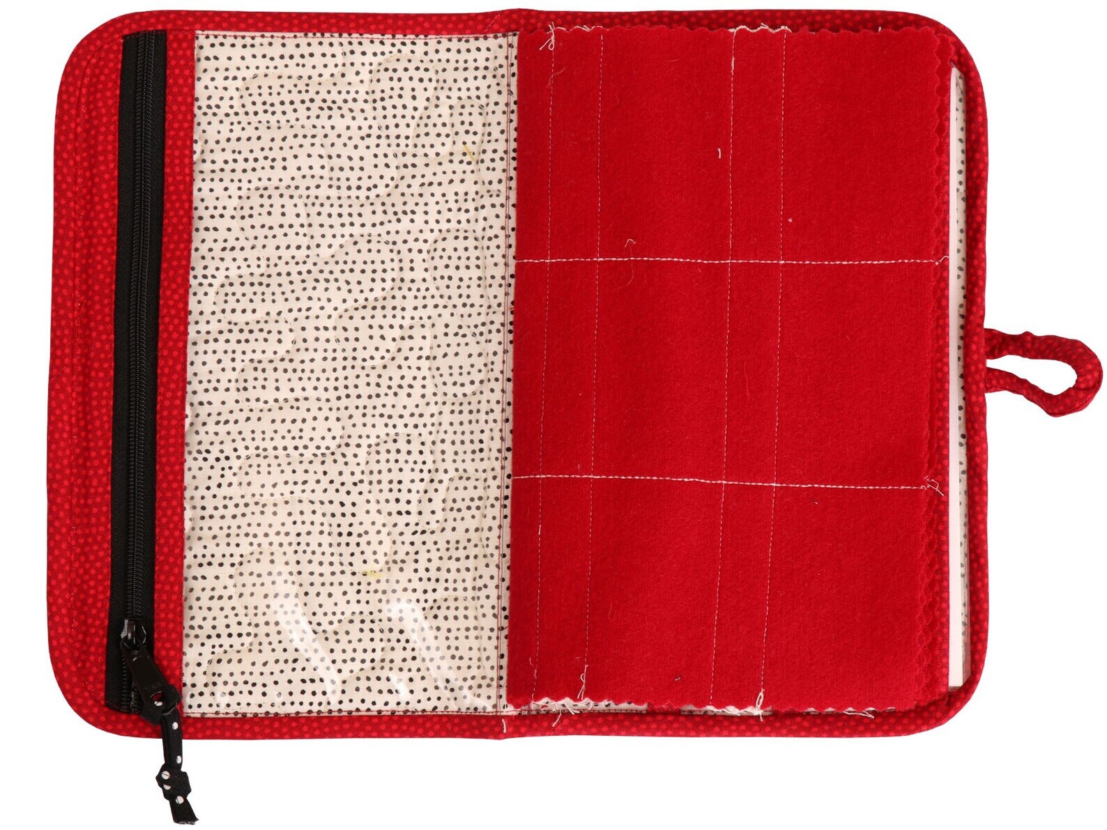 Inside the Large Needle Case, a zippered pocket holds scissors, needle threaders, thimbles and other supplies.