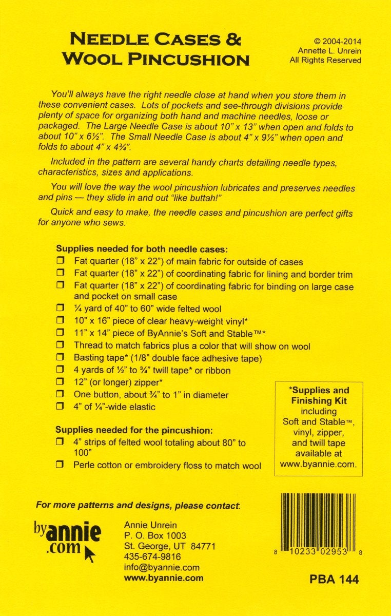 By Annies Needle Cases & Wool Pincushion Sewing Pattern. PBA144.