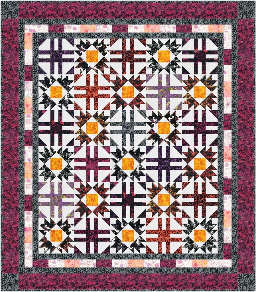A pattern for 10" squares (Tile Packs, Layer Cakes). Crown and Cross blocks criss-cross from corner to corner in this design. The second border also uses fabrics from the 10" squares so there is very little waste.