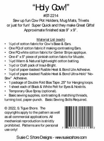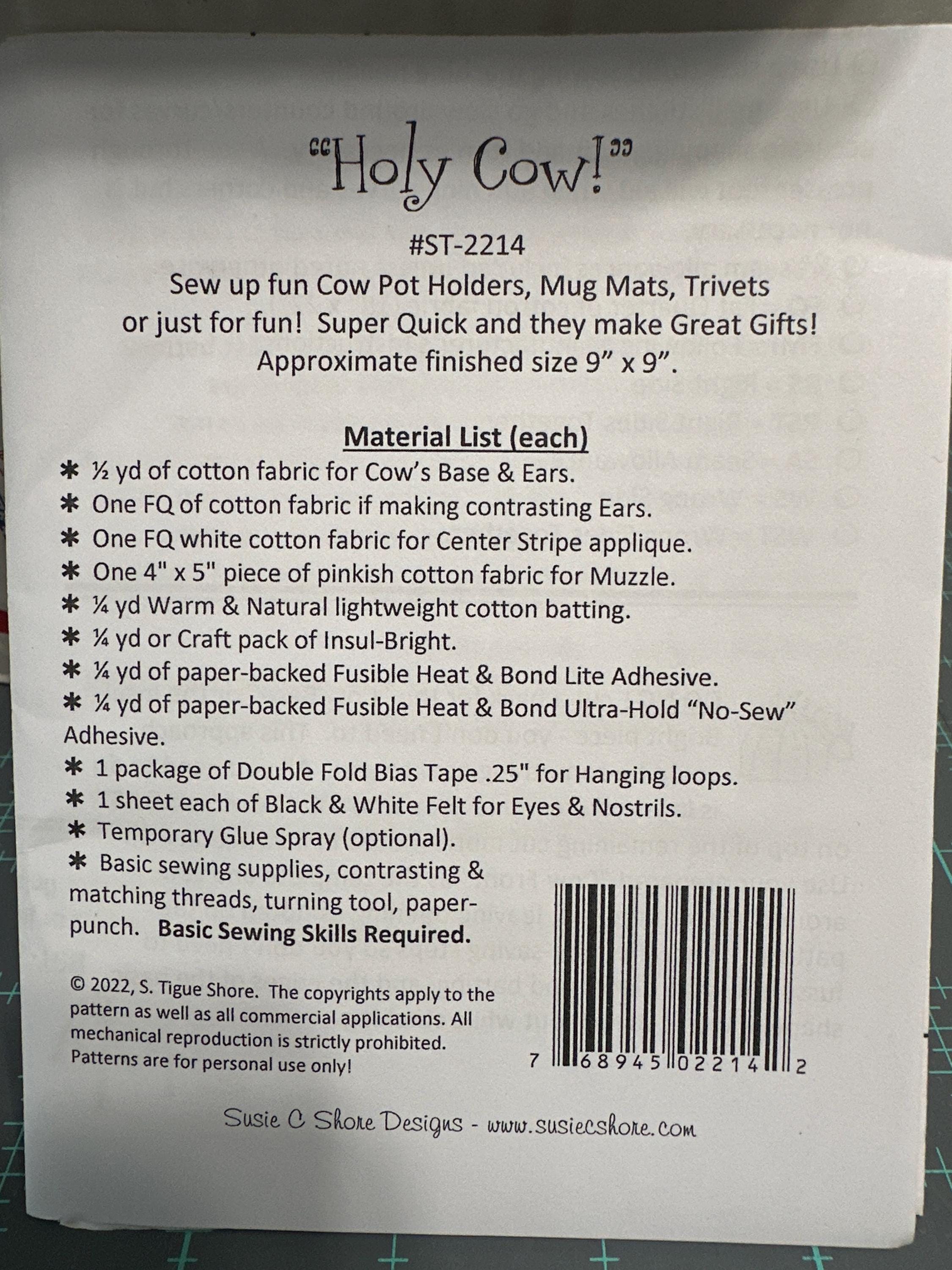 Holy Cow - Pot Holder, Mug Mat or Just for Fun- Cow Pattern ST-2214