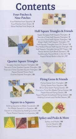 Traditional quilt blocks are made up of common elements such as Flying Geese, Square-in-Squares, and Quarter-Square Triangles. Each of the elements can be constructed in a variety of ways—choose the ones that are easiest and most efficient! In this one book, you will find each method carefully broken down, explained, and illustrated, along with comprehensive sizing information. It’s the ultimate no-math, no-stress reference for all common quilt block elements!