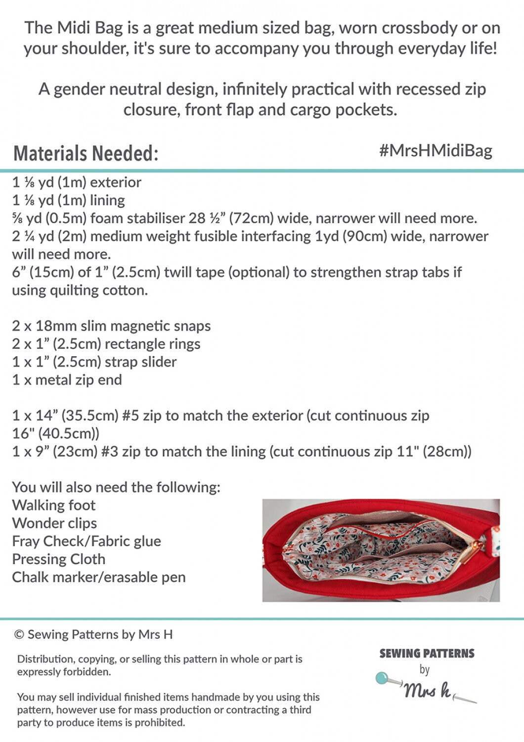 The Midi Bag- Sewing Pattern - By Mrs H.- MH-MIDI