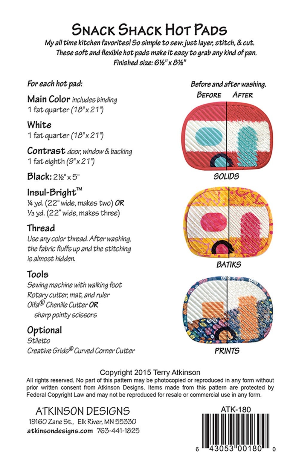 Snack Shack Hot Pads- Simple Pattern-Tried and True- ATK180