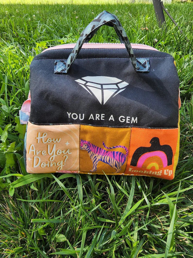 Kristyne has turned her talents to designing small bags and pouches in the past couple of years and I for one, am hooked. When a clever one comes along like one of these, I can never have enough. I always have multiple projects on the go, am always needing to take something with me when I travel, so another one is always welcome.