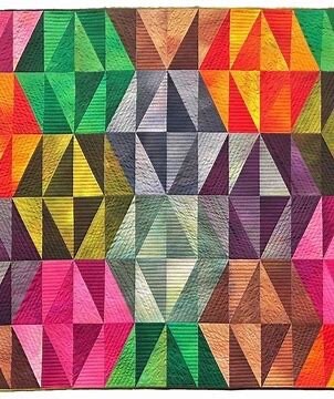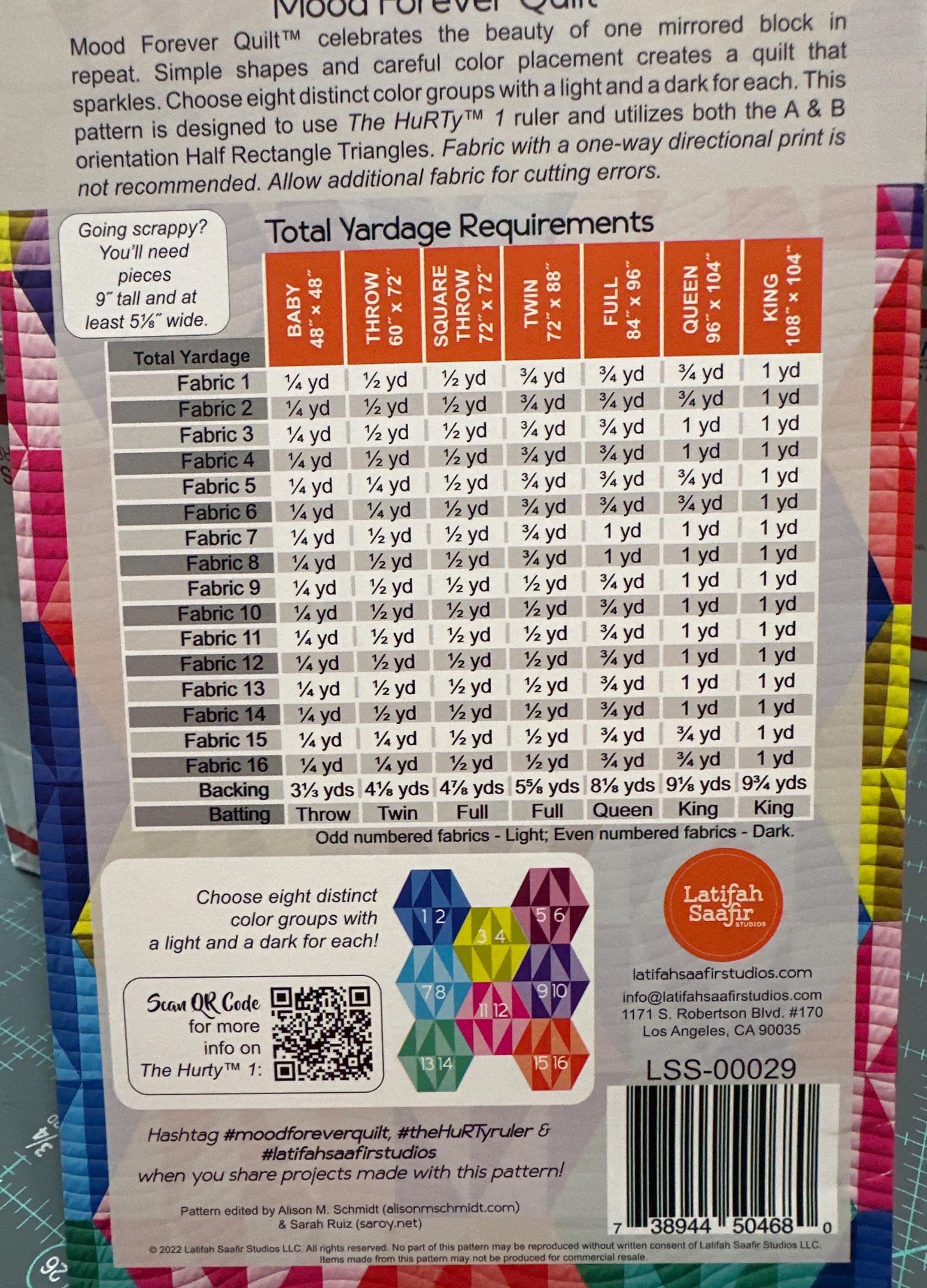 In the Mood Forever Quilt™ Half Rectangle Triangles (HRTs) are combined to form elegant jewel shaped hexagons. Mood Forever Quilt™ designed to use The HuRTy™ 1 half rectangle triangle ruler celebrates the beauty of one mirrored block in repeat. Simple shapes and careful color placement creates a quilt that sparkles. Choose eight distinct color groups with a light and a dark for each. This is the PDF or digital download of this pattern.