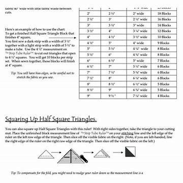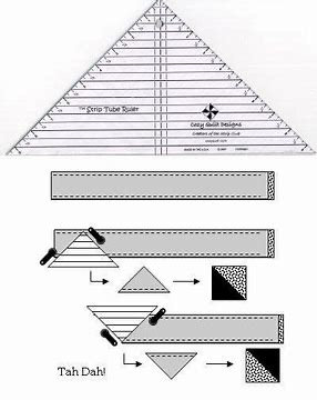 This ruler makes half square triangles a breeze by combining brilliant engineering with, "the tube technique." It's perfect to use with strips and even includes directions to make our favorite block from 2-1/2in strips. With this great gadget, you can easily make accurate half square triangles from 1in to 9-1/2in!