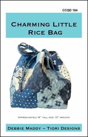 This charming little rice bag is perfect for rice storage or any other little trinkets you wish to keep inside! Material Requirements Include: (1) charm pack or (32) 5" squares or 1/2 yard for a solid outside fabric; 1/2 yd for lining; 1/4 yd for the drawstring casings and drawstrings; 2" hexagon template with 1/4" seam allowance included; (32) 2" hexagon papers for English paper Piecing; small piece of quilted batting (about 15" x 24"). 'Charming Little Rice Bag' pattern by Calico Carriage Finished size is about 8" tall and 13" around.