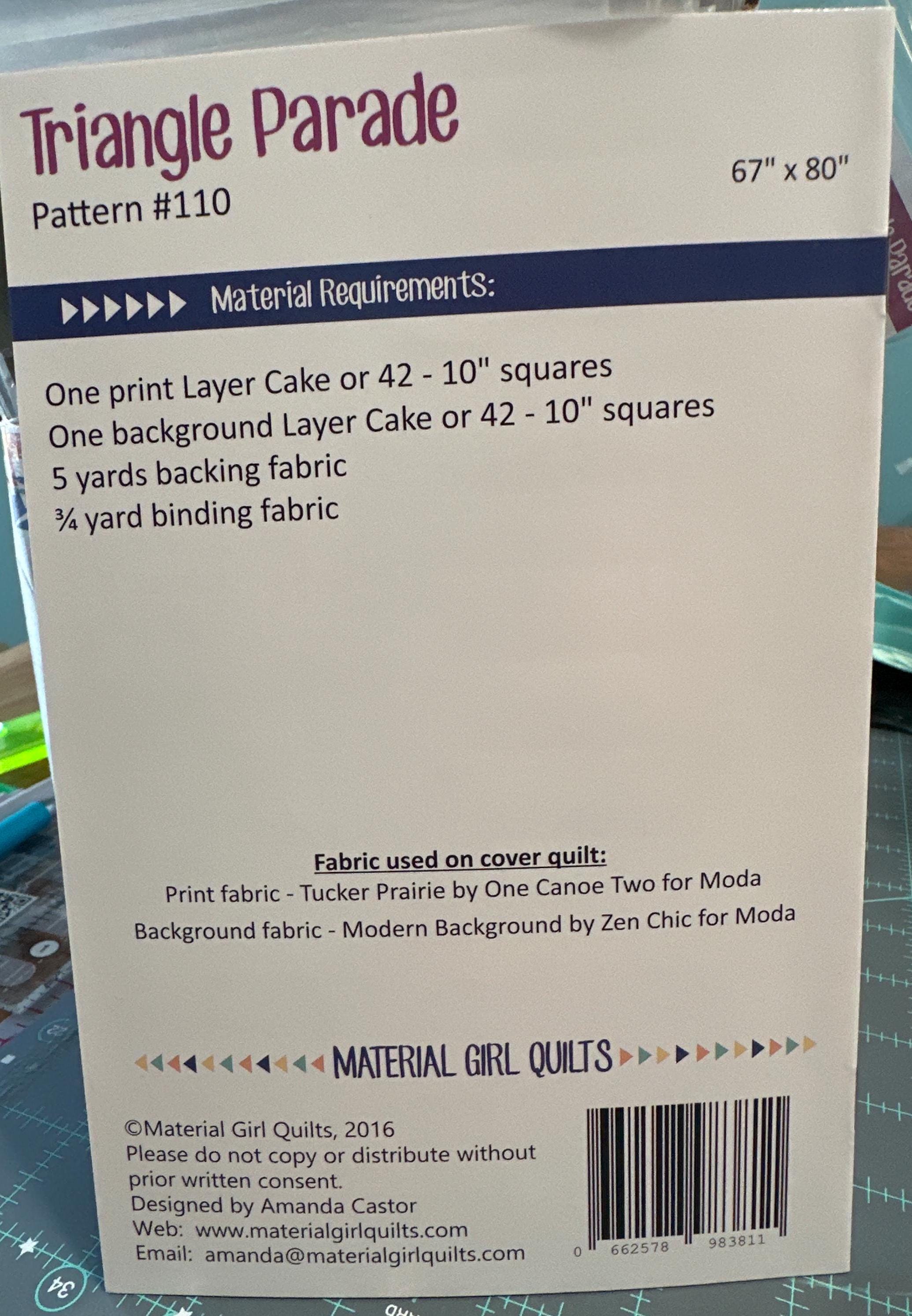 Triangle Parade Quilt Pattern by Material Girl Quilts, 10" Square Friendly