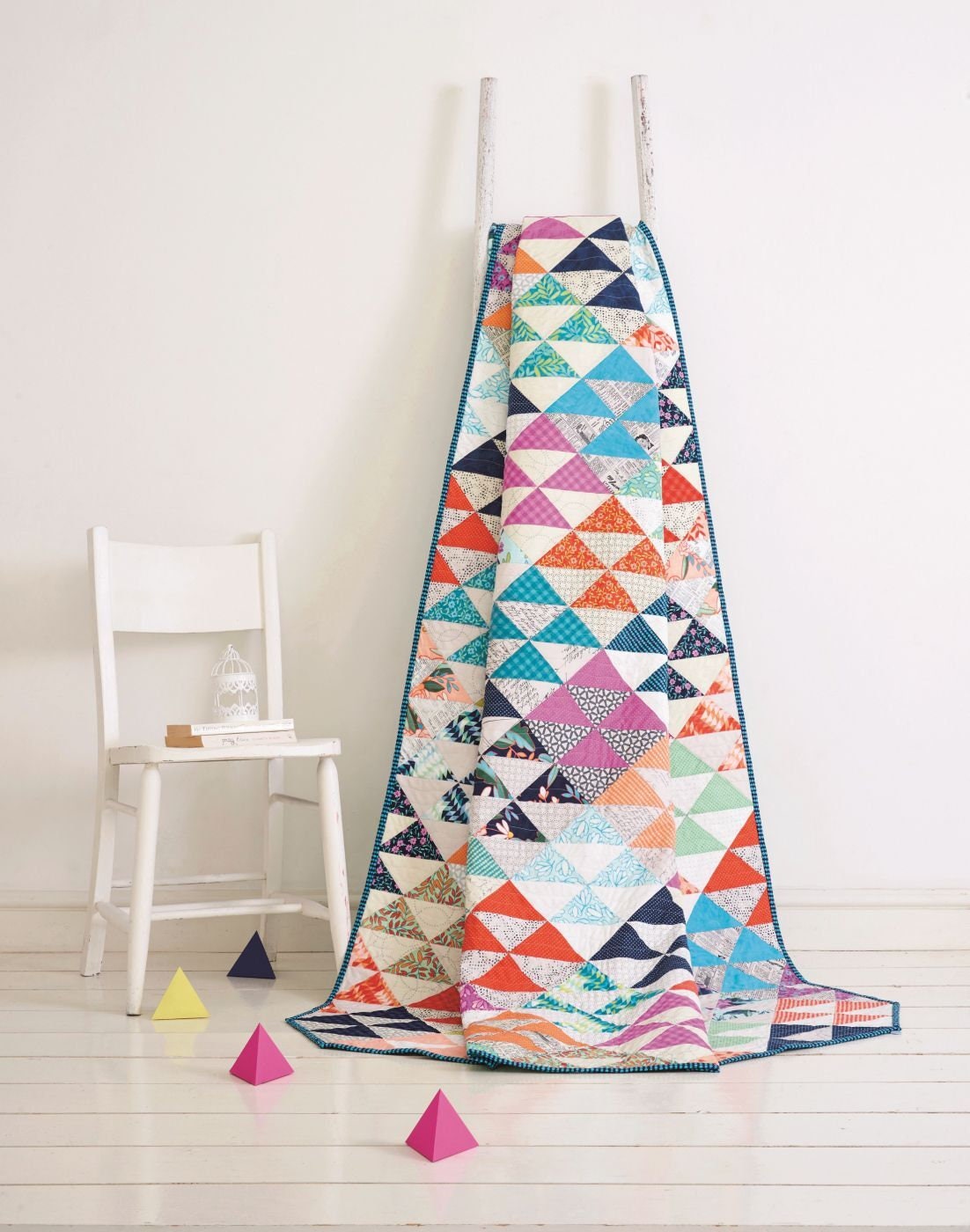 The Triangle Parade Quilt by Amanda Castor of Material Girl Quilts uses a 10-inch stacker to create a beautifully scrappy look without having to pull from your scraps! Finished size is 67" x 80".