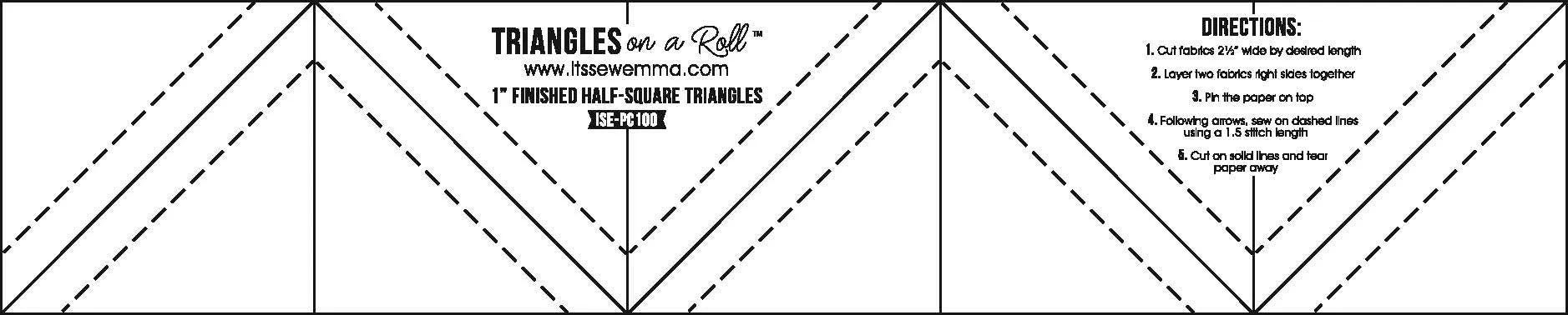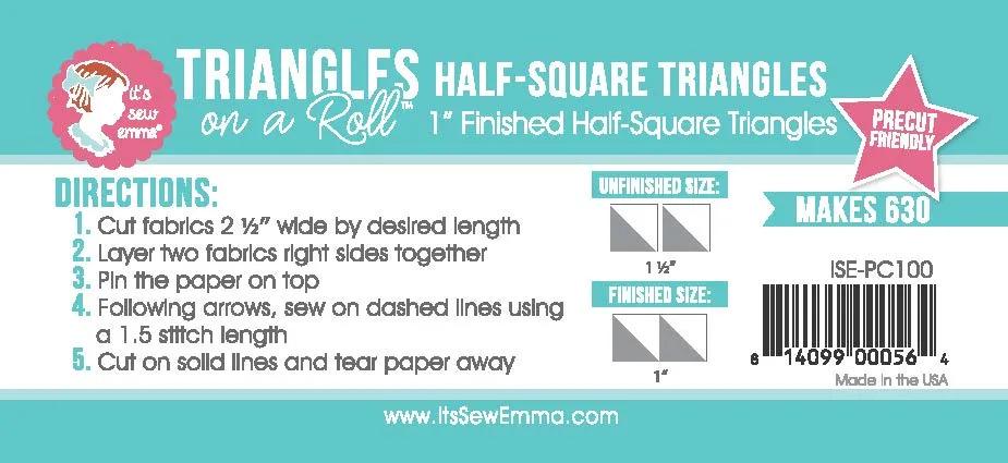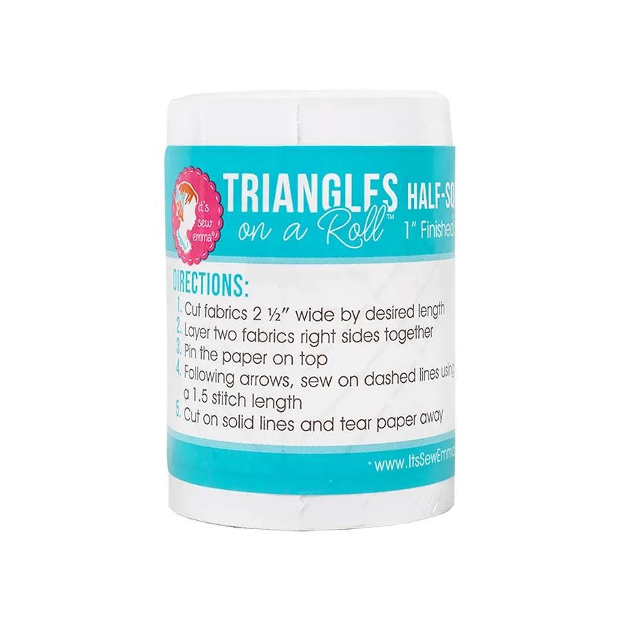 Makes 630, 1in finished half square triangle blocks. Triangles on a Roll™ triangle paper allows you to create perfectly accurate half-square triangle units in any size and amount you need for your next quilt. Unroll and cut just what you need, then roll it back up for easy storage.