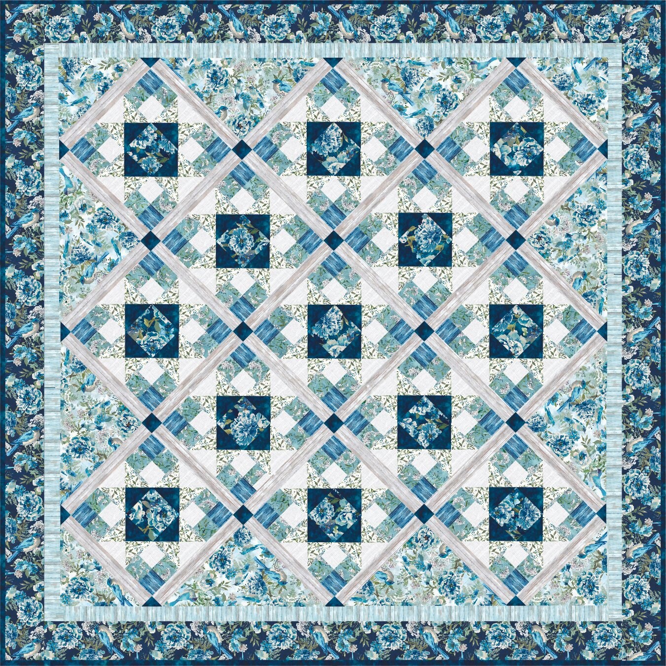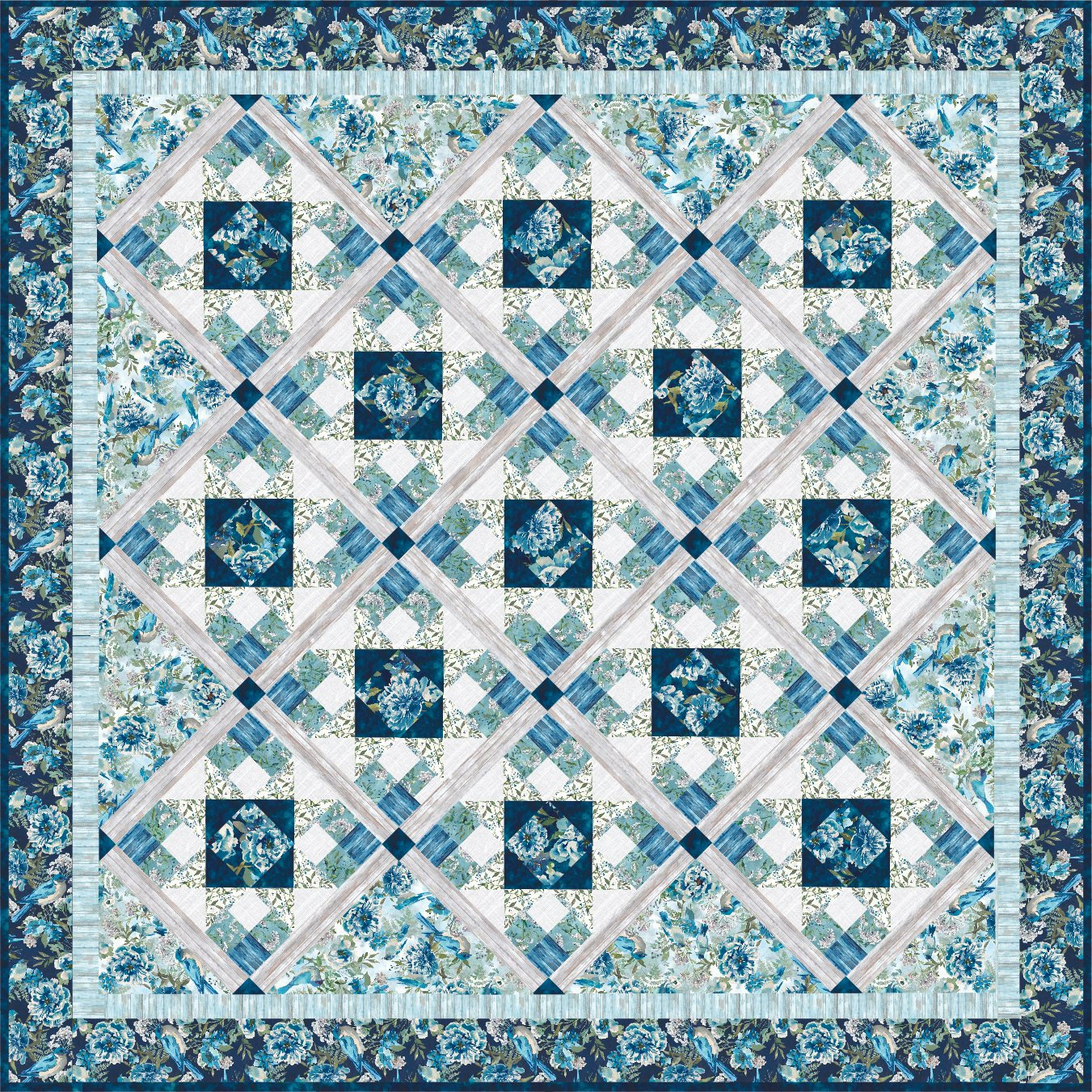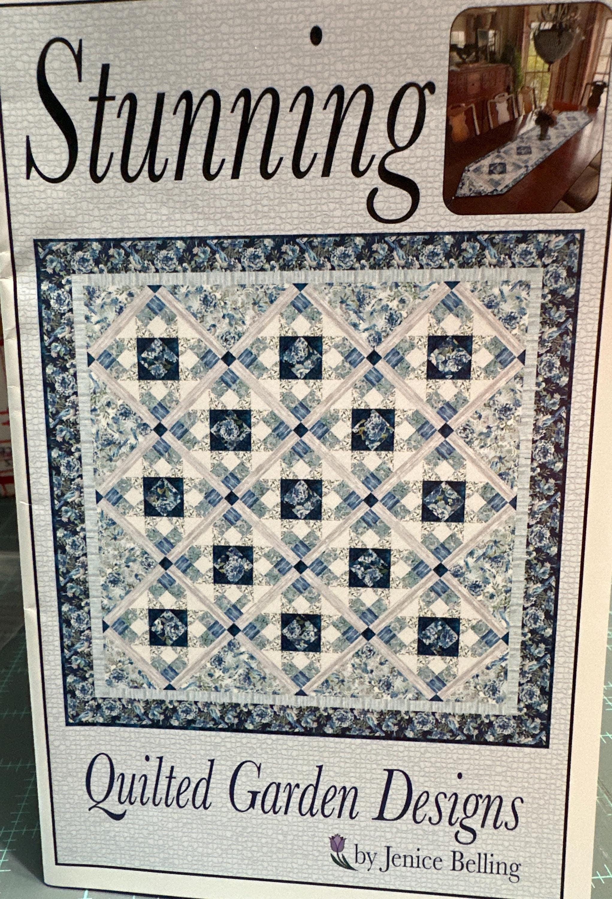 Quilt 71"x71" Runner 18"x96" (including tassels). Traditional blocks are set 'on-point' in the quilt, but straight-on in the runner. Rotary cut squares, triangles and borders are familiar and perfect for the new or experienced quilter. The classic blocks come together to create this stunning quilt, runner, or both - directions are all-inclusive. Self-made tassels make for a fun finish.