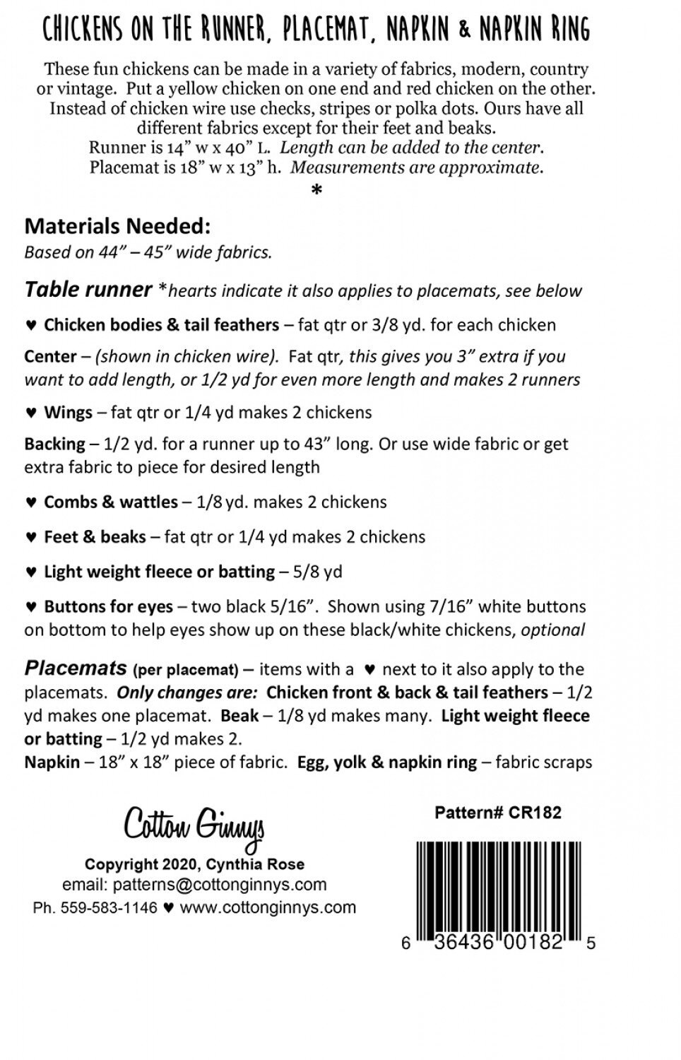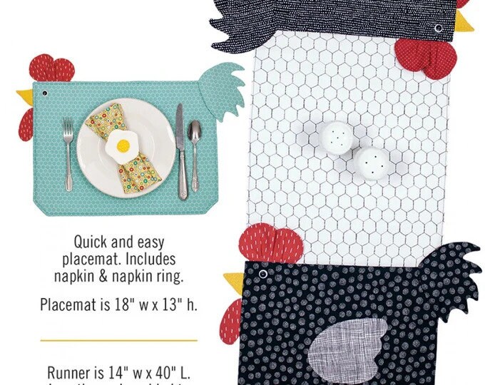 Chickens on the Runner , Placemat, Napkins and Napkin Ring.- # CR182 - Paper. Runner