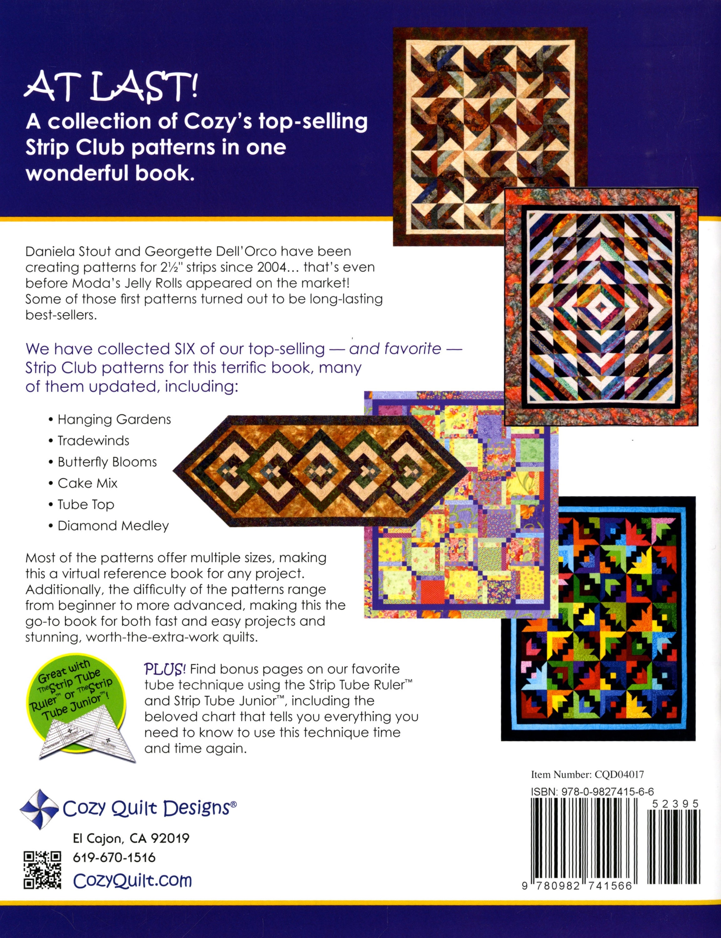 At last! A collection of Cozy’s top-selling Strip Club patterns in one wonderful book! Daniela Stout and Georgette Dell'Orco have been creating patterns for 2 ½ ” strip patterns since 2004… that’s even before Moda’s Jelly Rolls appeared on the market! Some of those first patterns turned out to be long-lasting best-sellers.
