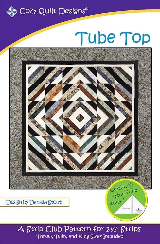 Tube Top - A Cozy Strip Club Pattern Designed for 2½" Strips. This pattern is a perfect way to use a jelly roll because it looks good in anything! This great pattern is made even easier with the Strip Tube Ruler #CQD05001!