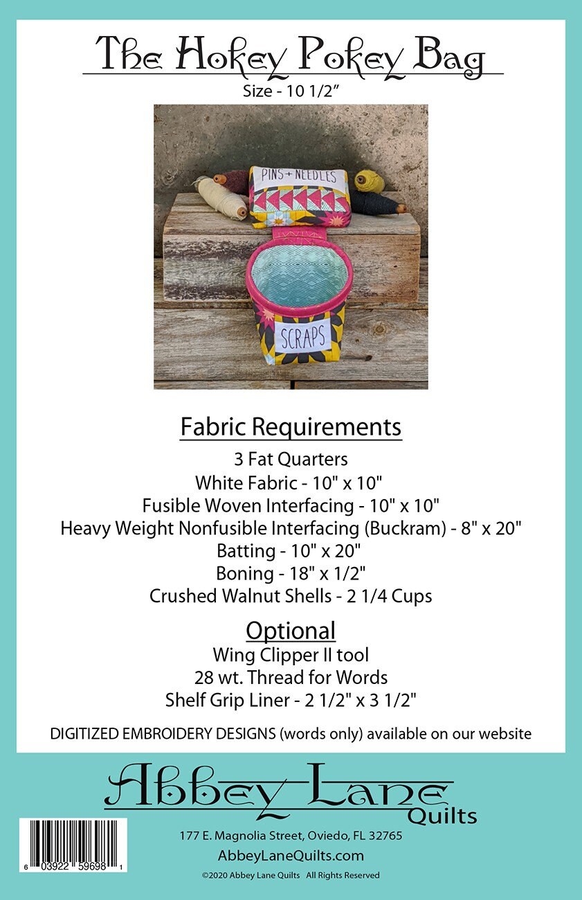 Fun little pin cushion with attached scrapbag. Makes a great class and has the option of hand sewing, machine straight stitching or purchasing the digitized words. No sewing room should be without at least one.