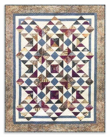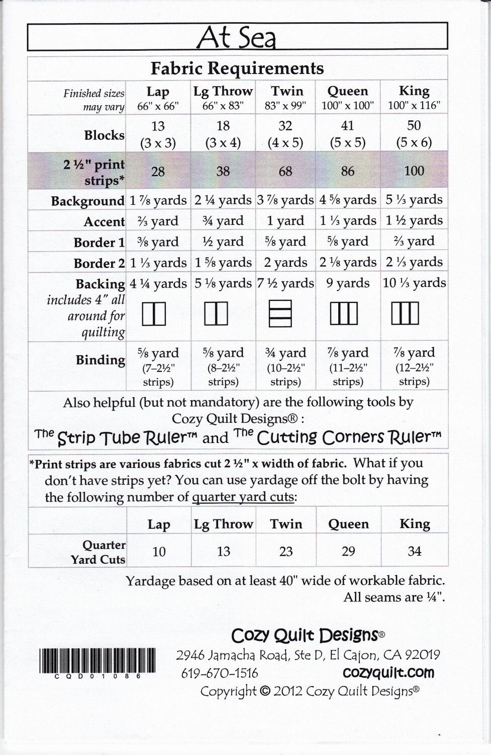 With just 2½” strips, some background, and an accent, you too can enjoy a day At Sea. This wondrous quilt looks much harder than it is - there's one simple block, twisted and turned and set on point. Best of all, the block uses the Strip Tube Technique to make it fast and easy. At Sea is made especially striking with the pieced setting triangles. Even those are not difficult, thanks to the magic of the Cutting Corners Technique.