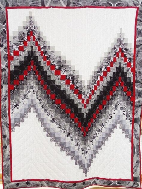 no-Measure Bargello - Now you can make this stunning Bargello quilt out of 2-1/2in strips without the fuss of measuring or using charts for fabric placement! With Wendy Mathson’s brilliant technique, you just collect a strip set that has pairs of identical strips (2 each of 20), arrange for a pleasing effect adding background. Then use her paper guide for easy secondary slicing and no-need-to-worry organization! You’ll know how to create the waterfall wave effect simply by following the arrows on the guide! Thinking is minimal!