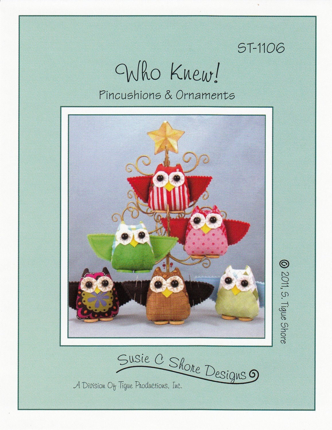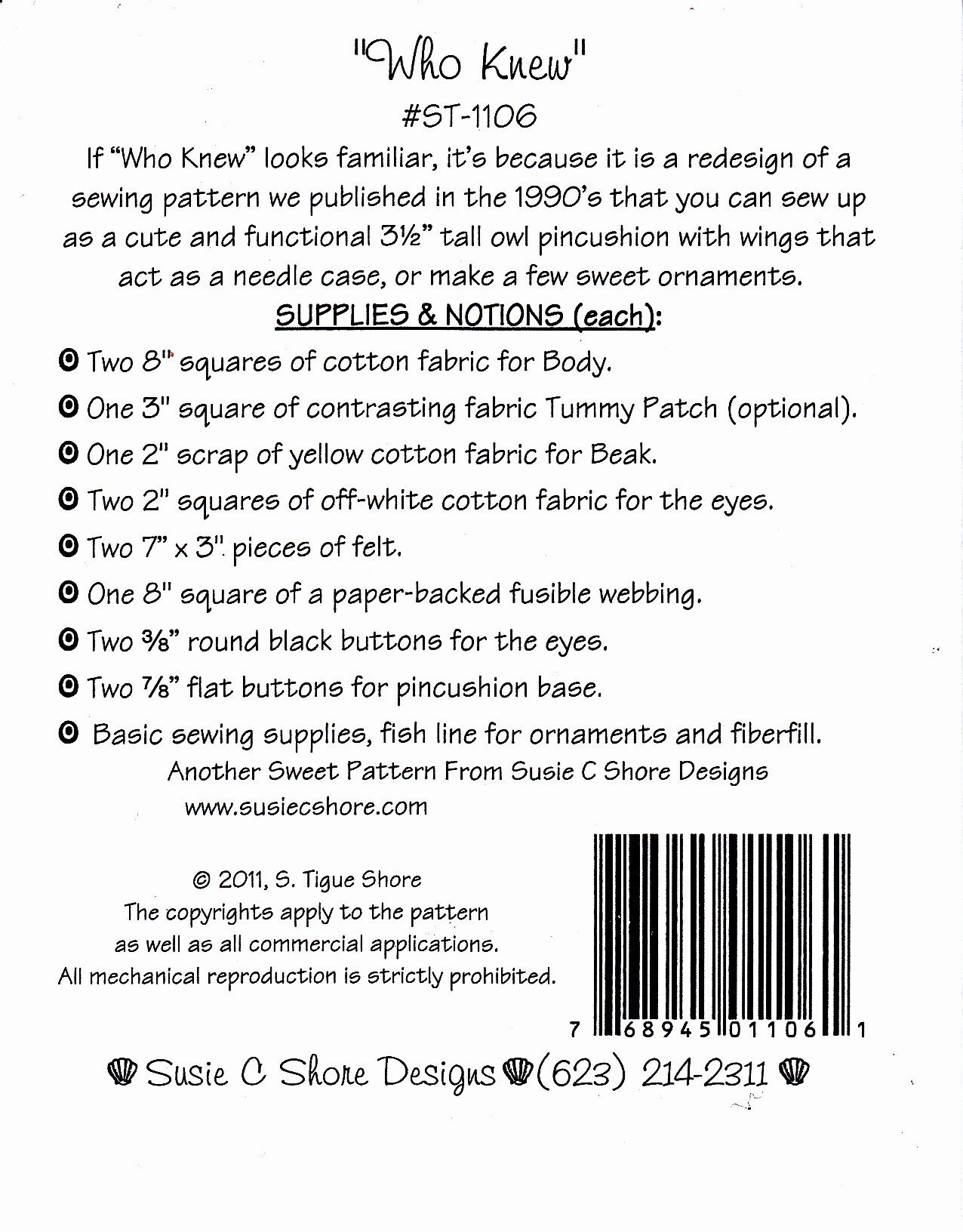 If "Who Knew" Looks familiar, it's because it is a redesign of a sewing pattern Susie C. shore Published in the 1990s.. You can sew up as a cute functional 3.5" tall owl pincushion with wings that act as a needle case, of make a few sweet ornaments.