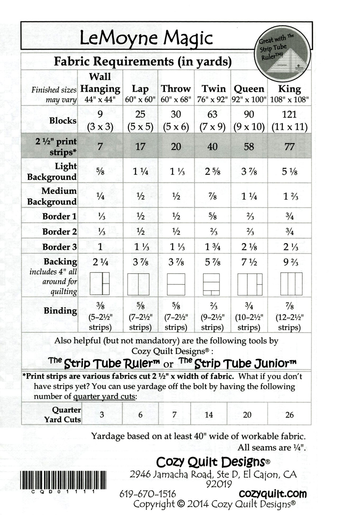 The LeMoyne Block is no longer daunting, scary, or difficult! Thanks to the beauty of pre-cut 2-1/2in strips and the tube technique, you can make your own LeMoyne Magic quilt with ease and confidence. There are no Y-seams, no difficult sewing, and no reason to run away from this block any longer.