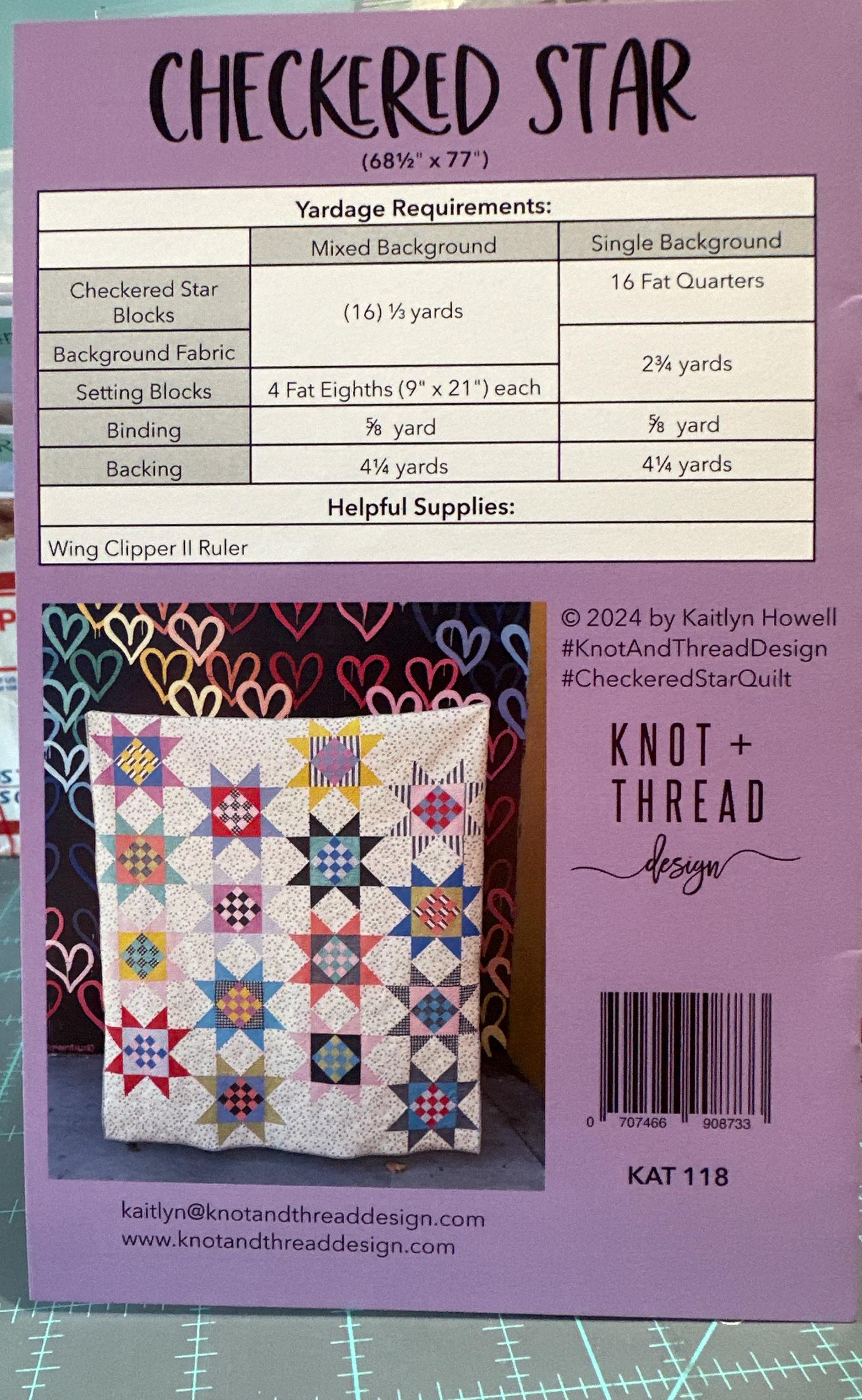 The Checkered Star Quilt pattern features a classic design with a modern twist. Each block showcases a vibrant and dynamic combination of checkered squares and a sawtooth star. The alternating placement of these blocks adds a sense of movement and depth to the overall design. This pattern is a perfect blend of tradition and contemporary style, making it a timeless and eye-catching choice. Quilt Measure 68.5 x 77