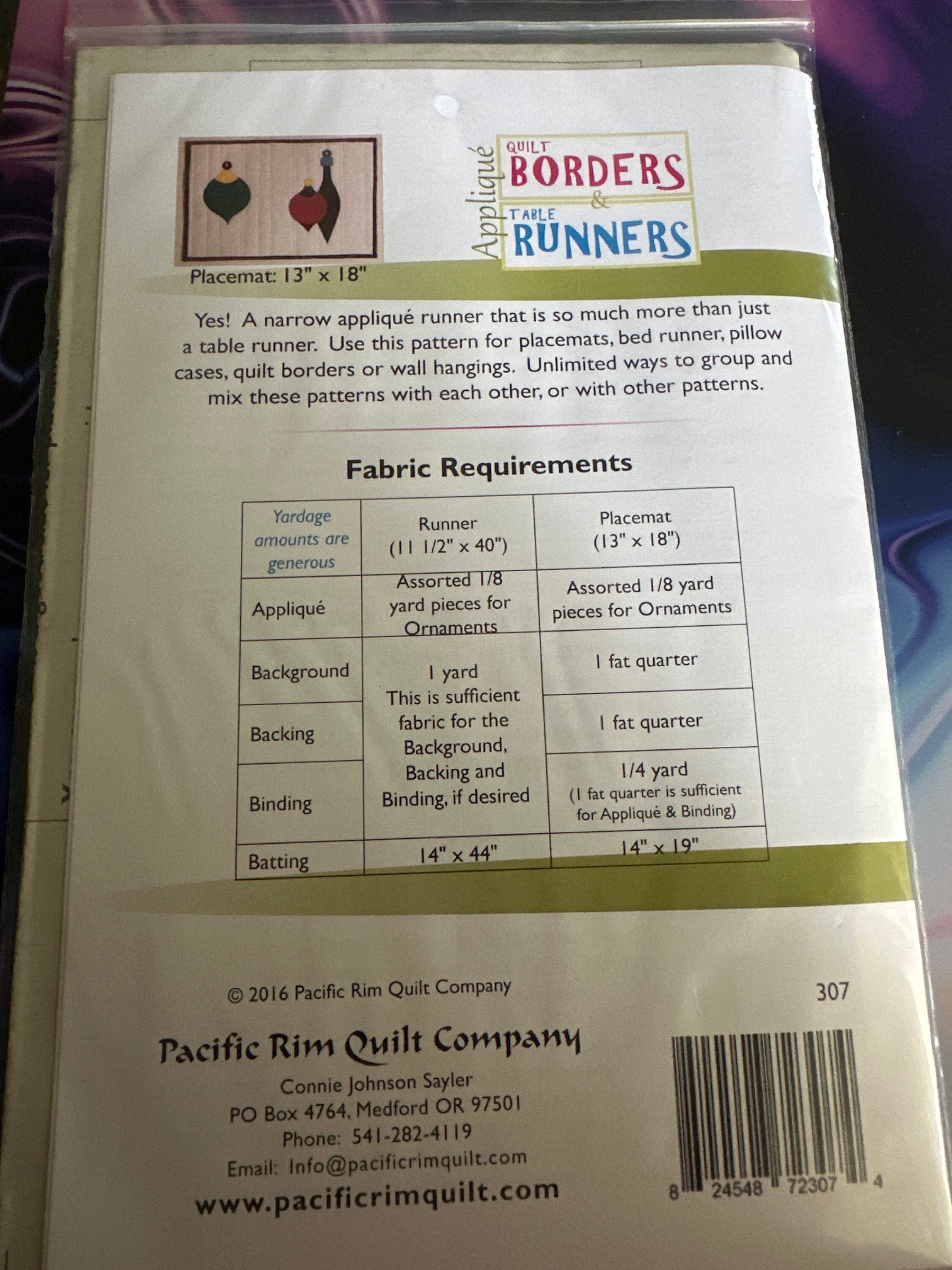 Ornaments Paper Applique Quilt Border and Runner Pattern by Pacific Rim Quilt Company