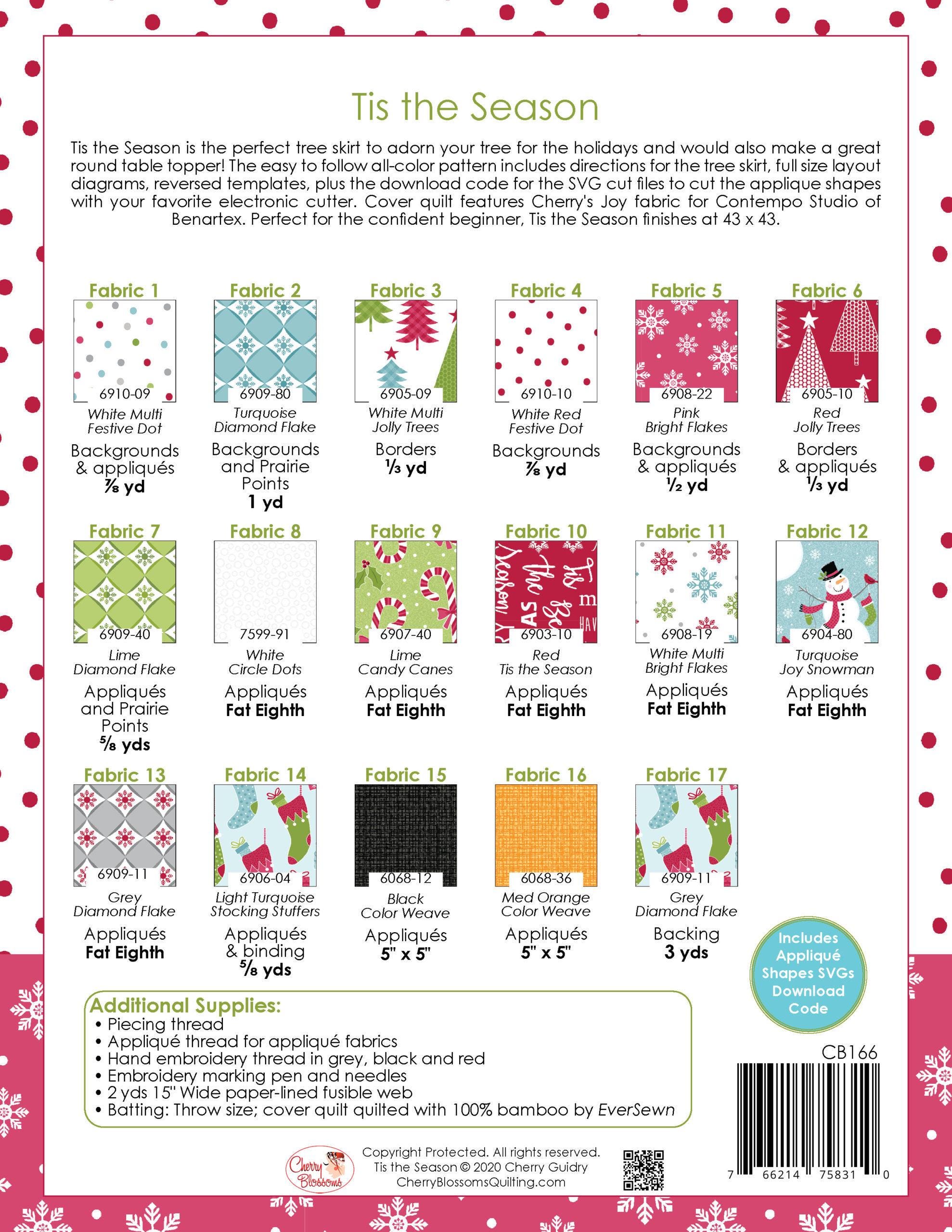 The Cover Quilt features Cherry's Joy Fabric for Contempo Studio of Benartex. Perfect for the Confident Beginner., This the season Finishes at 43" x 43"