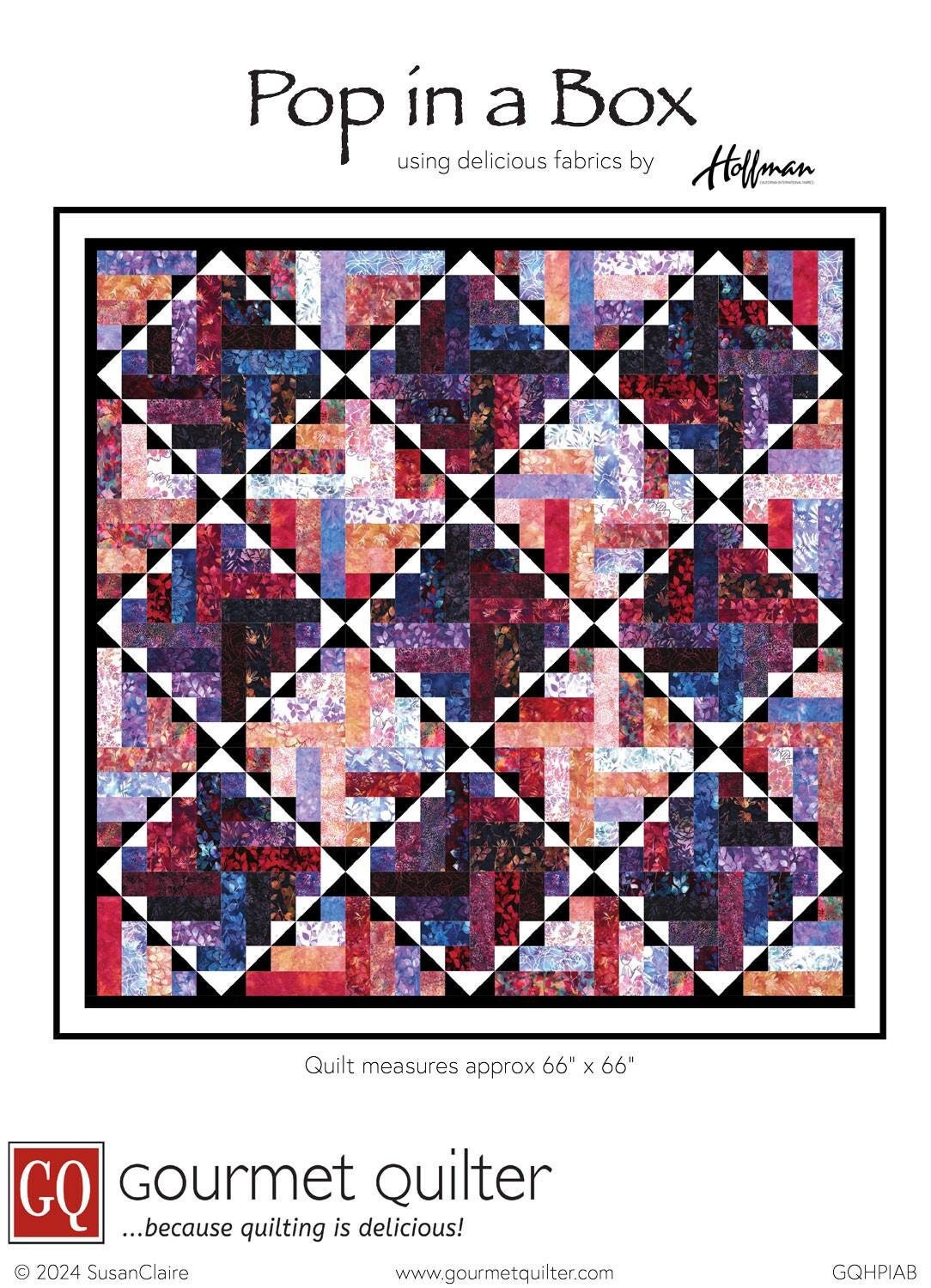 Pop in a Box, measuring 66" x 66", is a fun pieced quilt using a Bali Pop by Hoffman Fabrics.