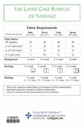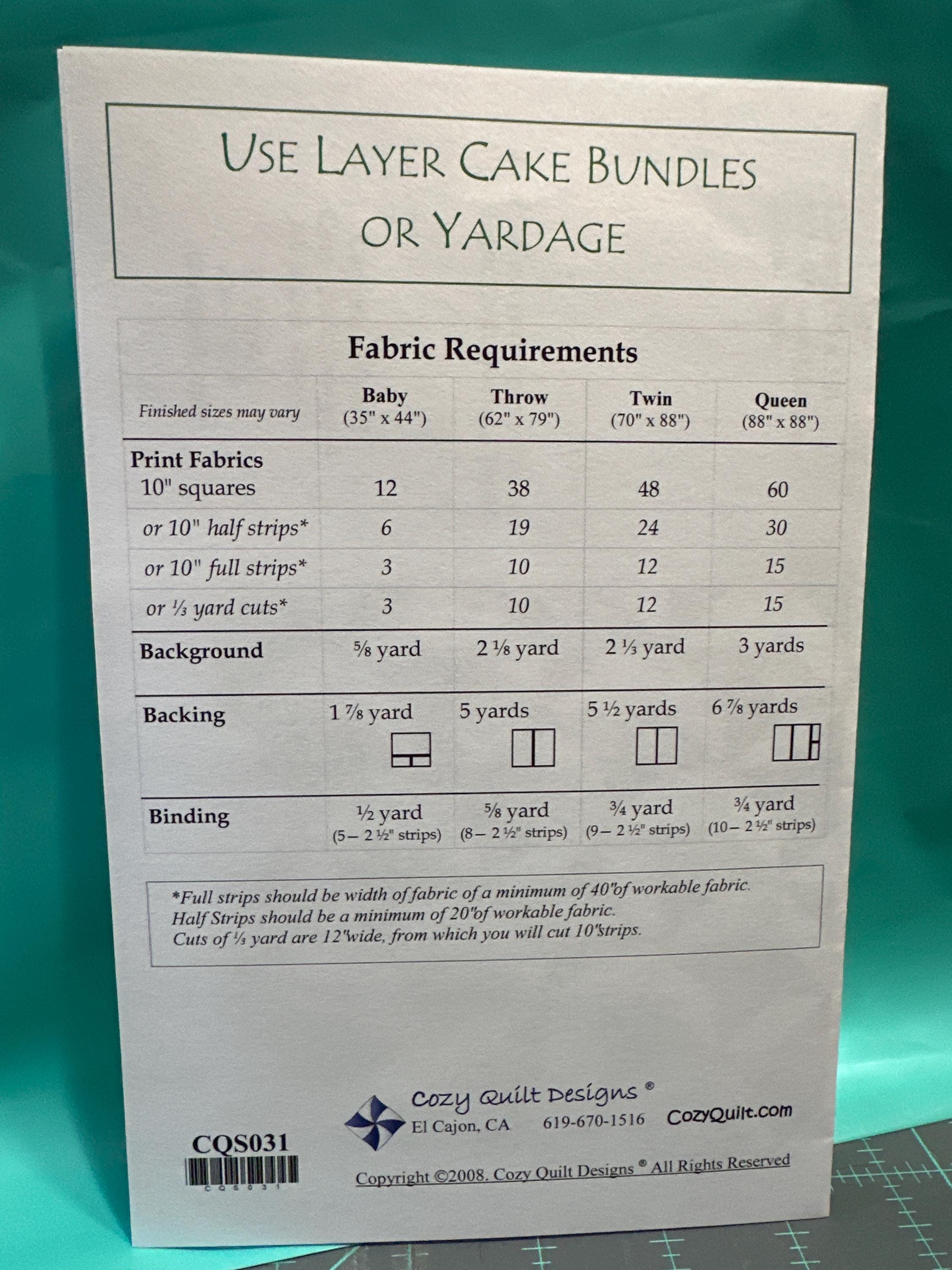 Perfect for fabric out of your statsh or from a Layer Cake, this quilt is easy and wonderful.