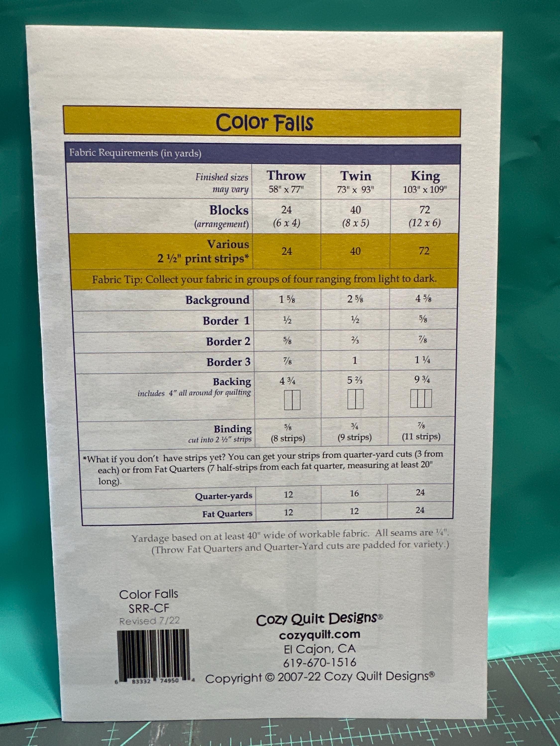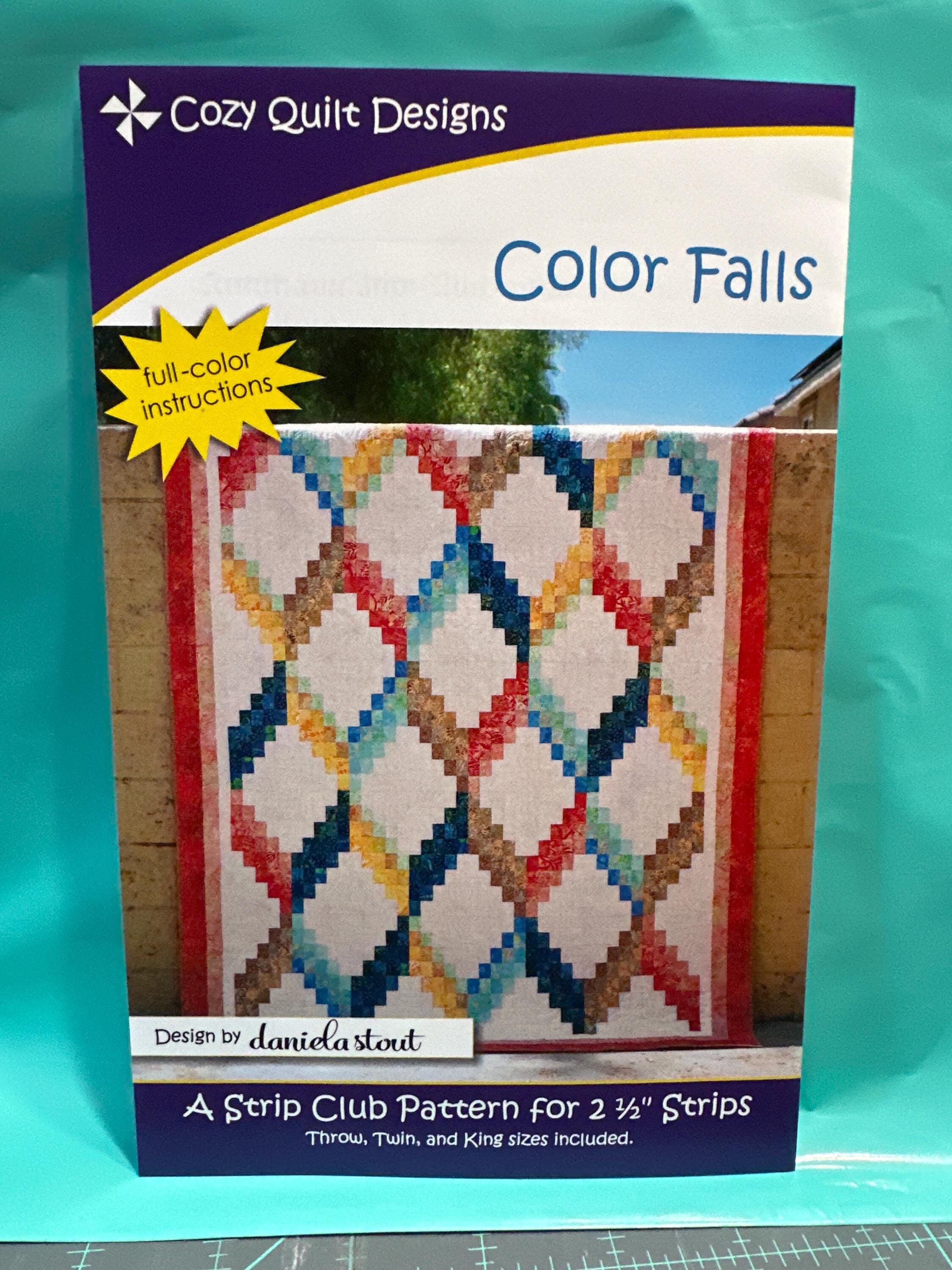 A Strip Club pattern for 2½" strips, revised and colorized in September of 2022! This stunning quilt has a bargello effect, but it's not as difficult since it's put together in blocks. When picking your fabrics, collect them in groups of four ranging from light to dark. Choose a background and borders to complement. Full-color instructions available for the following sizes: throw, twin, and king.
