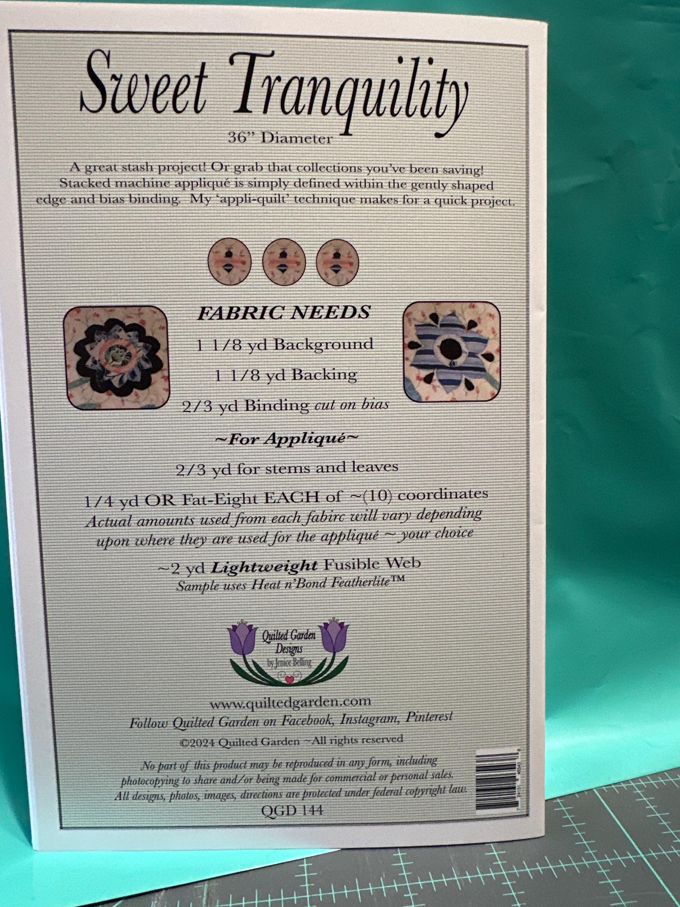 A great stash project! Or grab that collection you've been saving. Stacked machine applique is simply defined within the gently shaped edge and bias binding. Jenice Bellings Appli-quilt technique makes for a quick project.