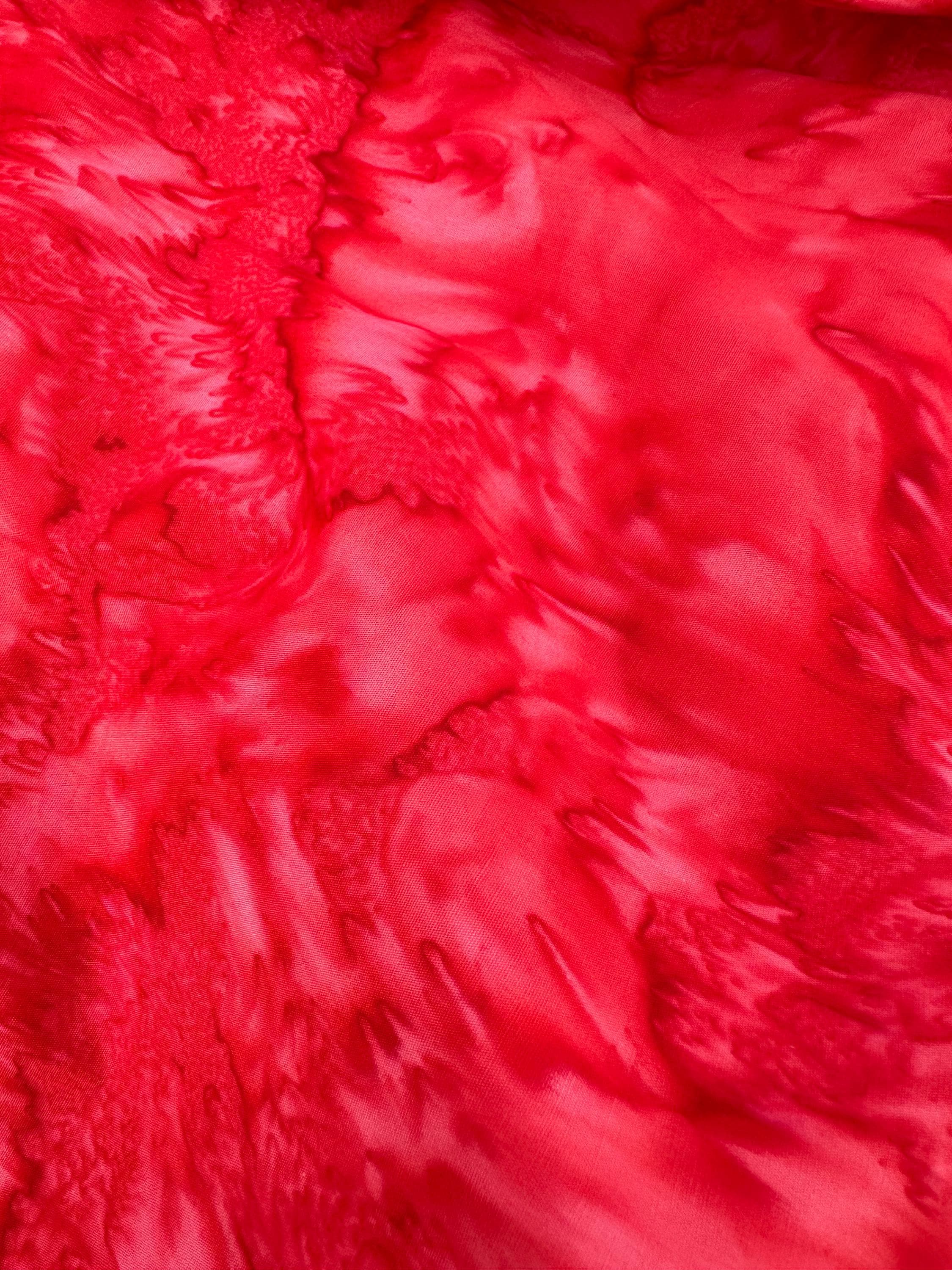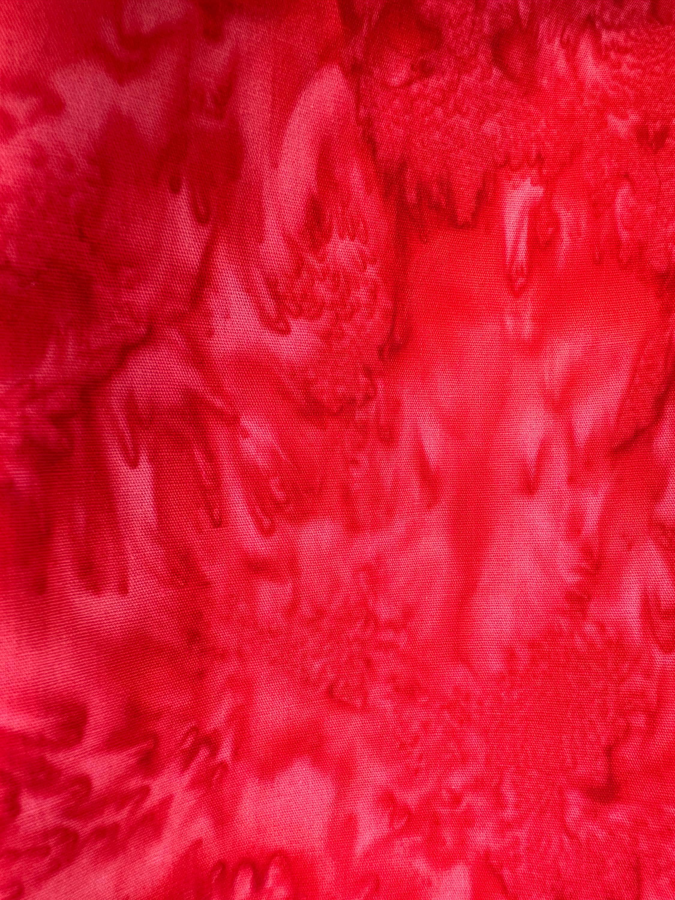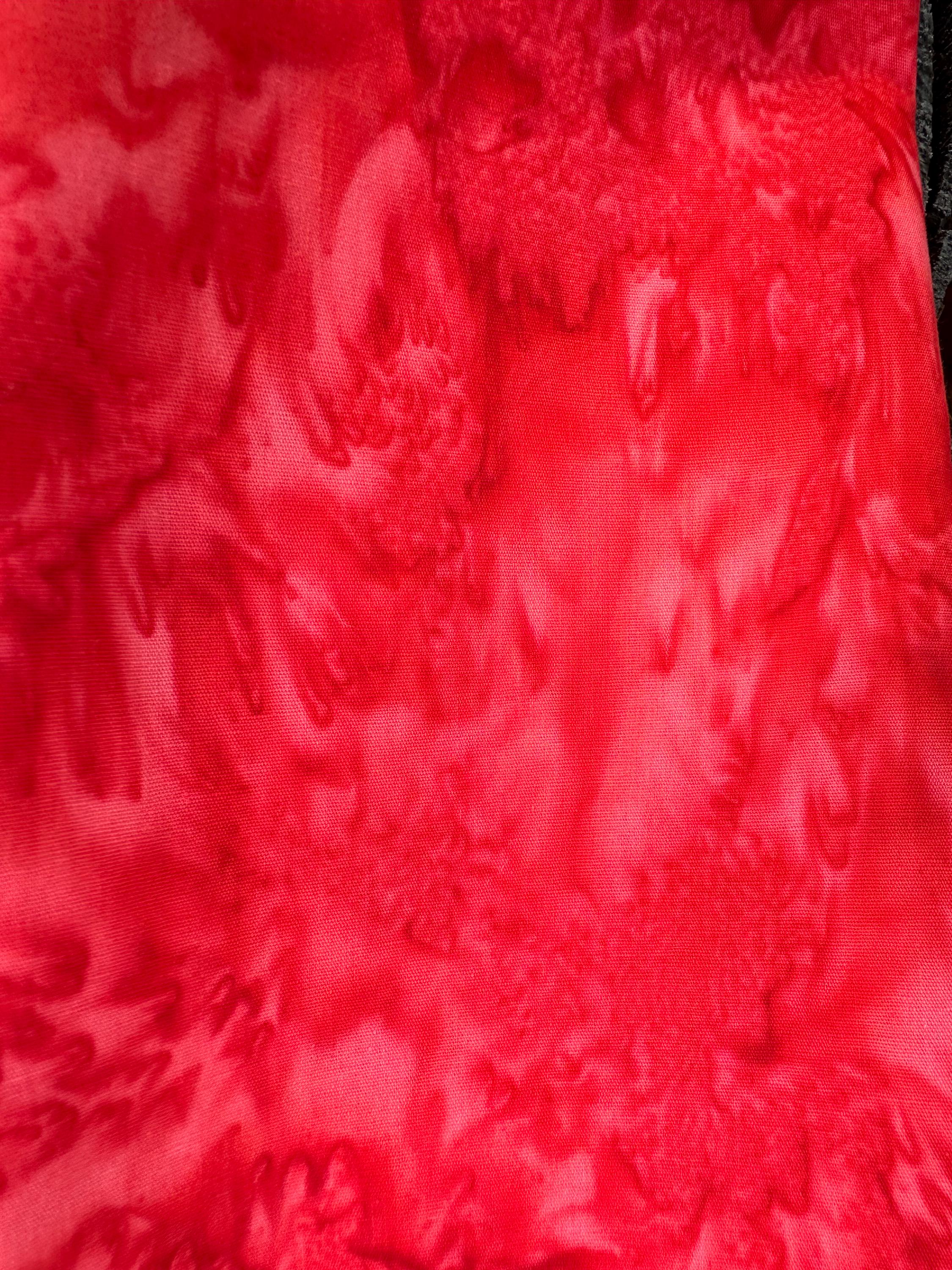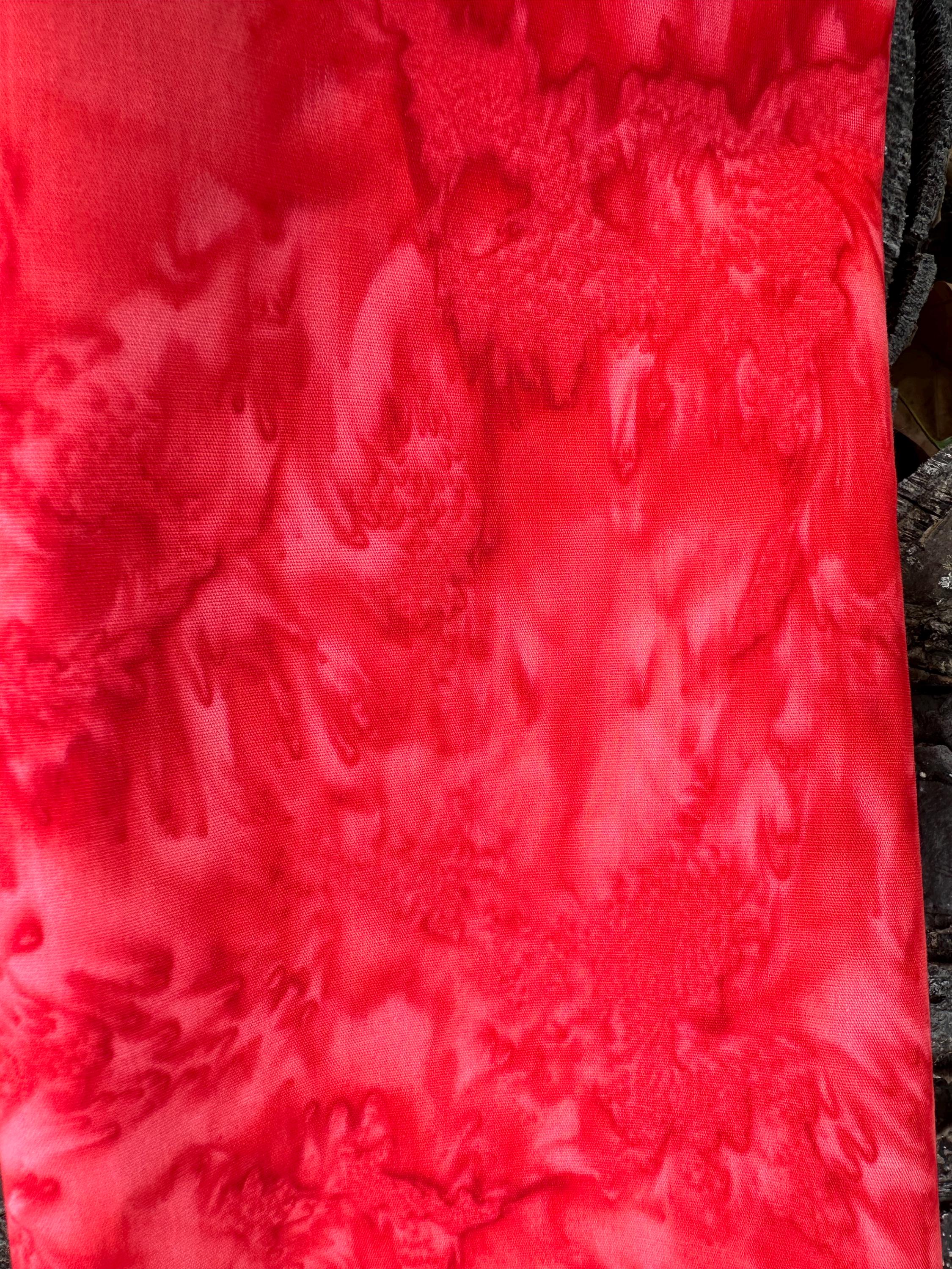 Flame Red, Bright Red 100% Cotton. 44/45” wide. Mottled style. Hand-dyed in Bali.
